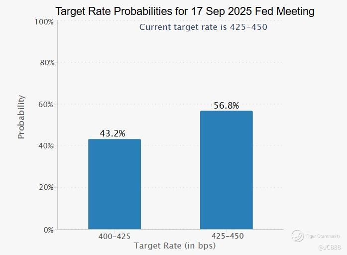 Almost immediately, market analysts lowered probability of a September 2025 rate cut to 56.8% from 68%. (see above)