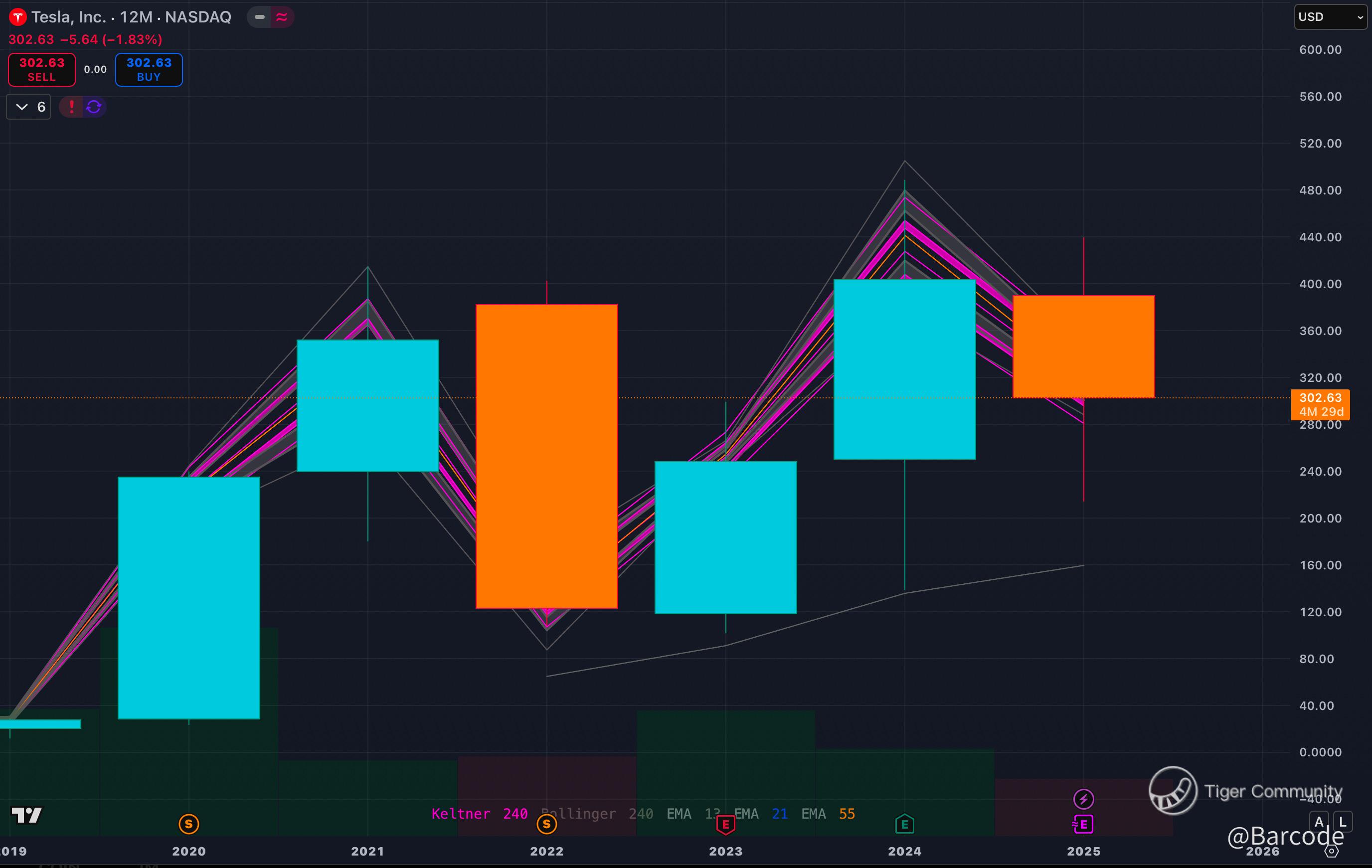 $Tesla Motors(TSLA)$ πŸ“† On 5Aug2024, $TSLA marked a pivotal low at $182 before erupting into a parabolic climb that topped out at $488 by mid-December. That wasn’t just a recovery. It was a roadmap.