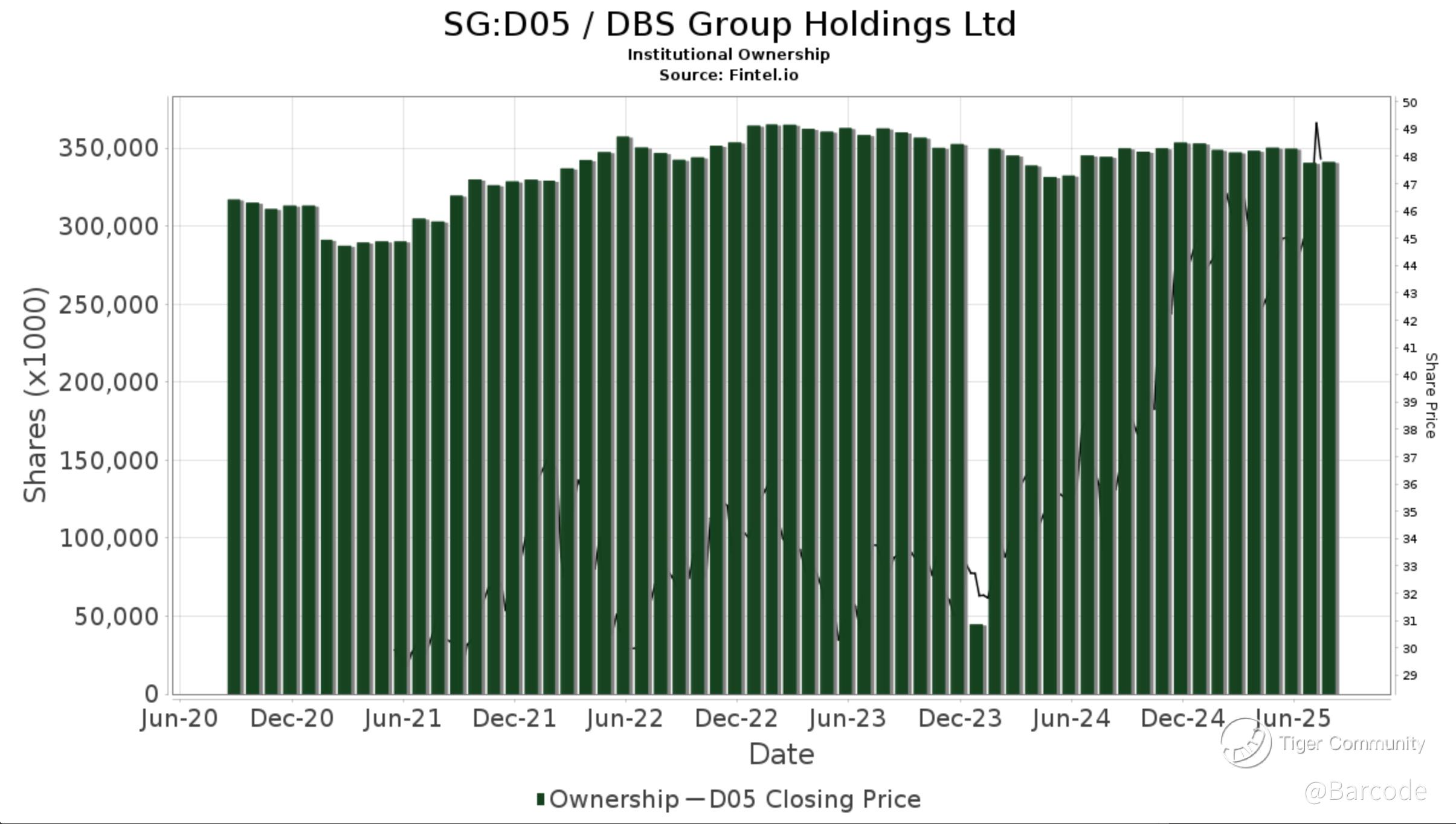 From a positioning perspective, the stock just cleared S$49.67 resistance. That zone had capped the prior range for five sessions. With institutional ownership climbing again (confirmed by Fintel chart), I’m now watching for sustained closes above S$50. If confirmed, that opens up the S$52.80 extension area from recent compression. The S$45.20 zone remains key mid-term support and aligns with the June breakout shelf.