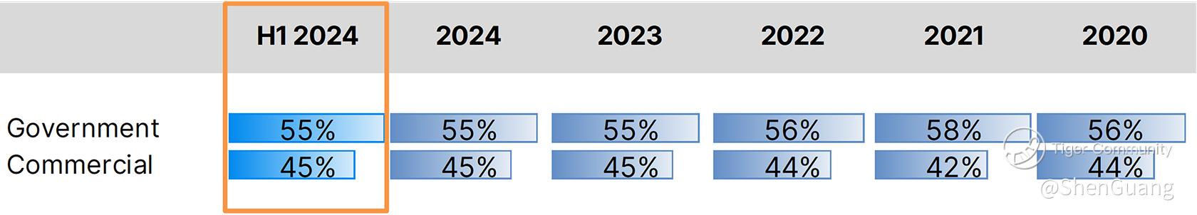 The company makes a delineation between government and commercial clients as an indication of its breadth of service. As of H1 2025, the split has been stable since FY 2023.