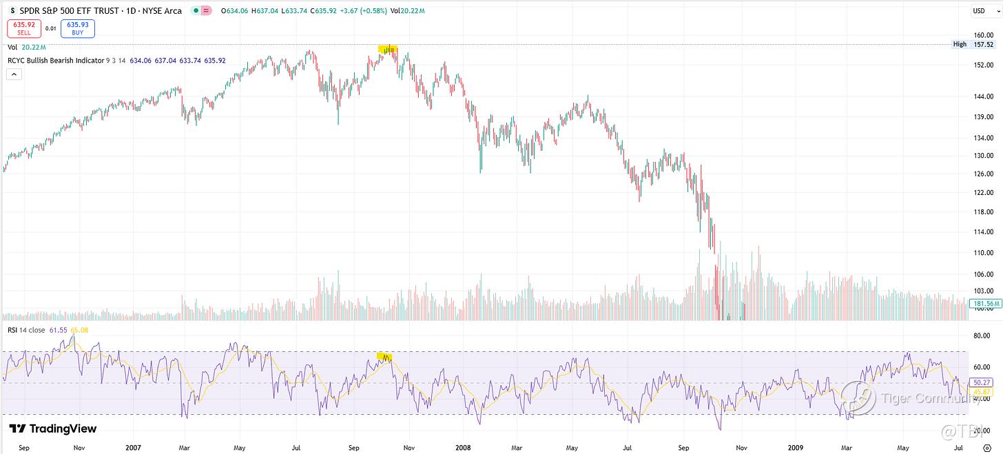 And lastly, the one that started it all - the daily bearish divergence formed in 2007 prior to the Global Financial Crisis.