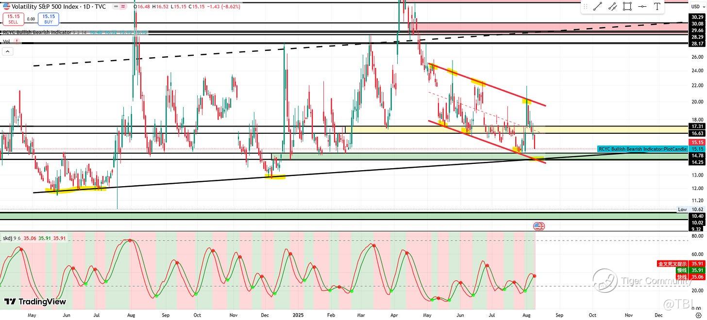 VIX only has support around the 14.25 daily imbalance - 14.78 support level. That daily imbalance has remained unfilled for over half a year, and a fill of that level is likely to result in a sharp bounce for VIX, provided the black support trendline and the red descending channel holds. If this 14.25 level breaks properly without a “squat” (false breakdown), then expect the upside move to be even quicker below this level. For the time being, bears have defended this level well but when a dam breaks, the bulls come flooding in.