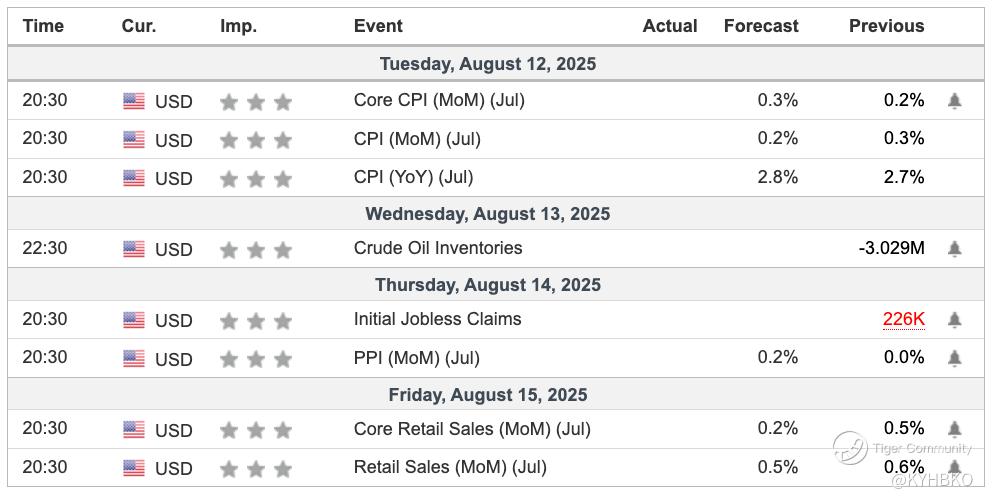 Economic Calendar: Key Market Movers (week of 11Aug25)
