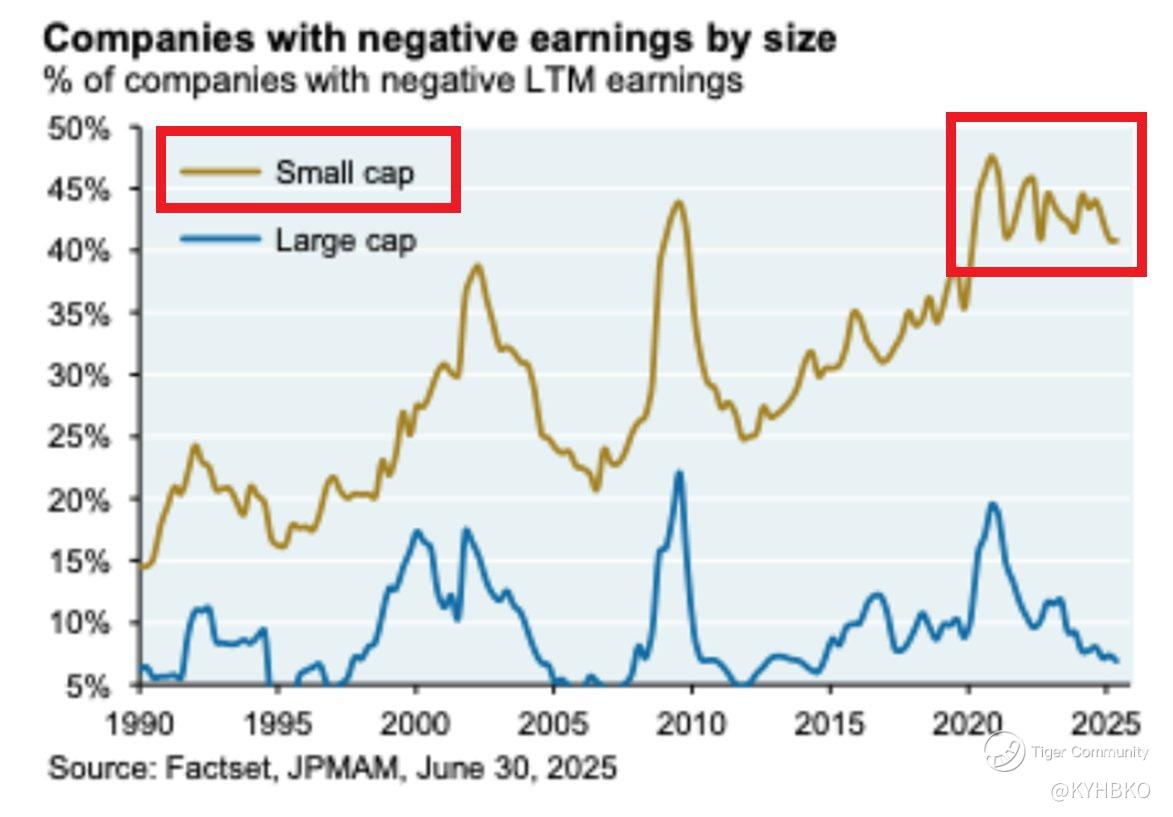 The number of ZOMBIE firms has rarely been larger in the US: 40% of the Russell 2000 firms are unprofitable, near the most on RECORD The share is nearly as high as in the FINANCIAL CRISIS. Interest expense as a % of debt of these firms is ~7%, the highest in ~20 YEARS.