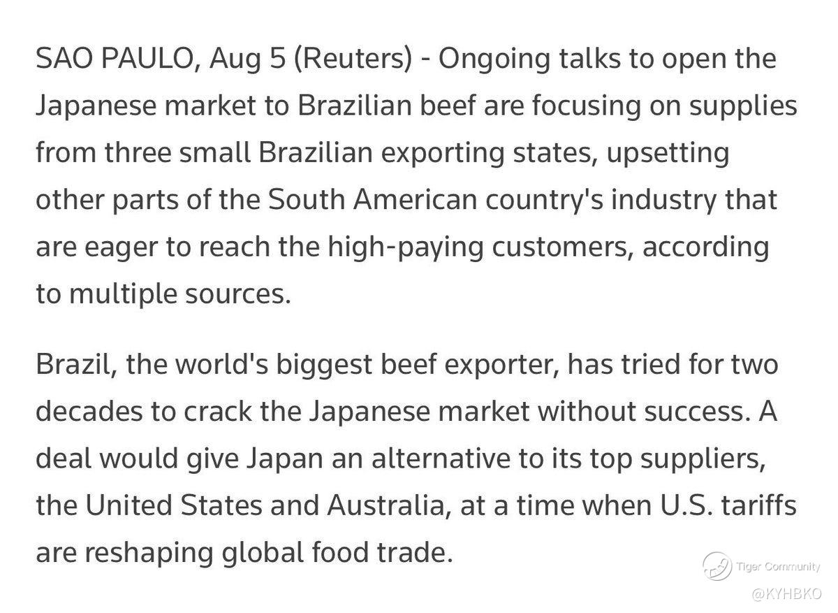 Japan and Brazil, both fed up with the United States, are looking to begin trading beef with each other for the first time in history. America First = America Last. - X user Spencer Hakimian