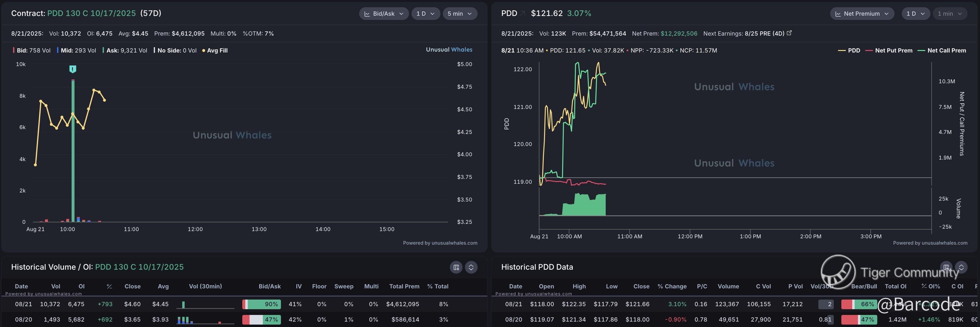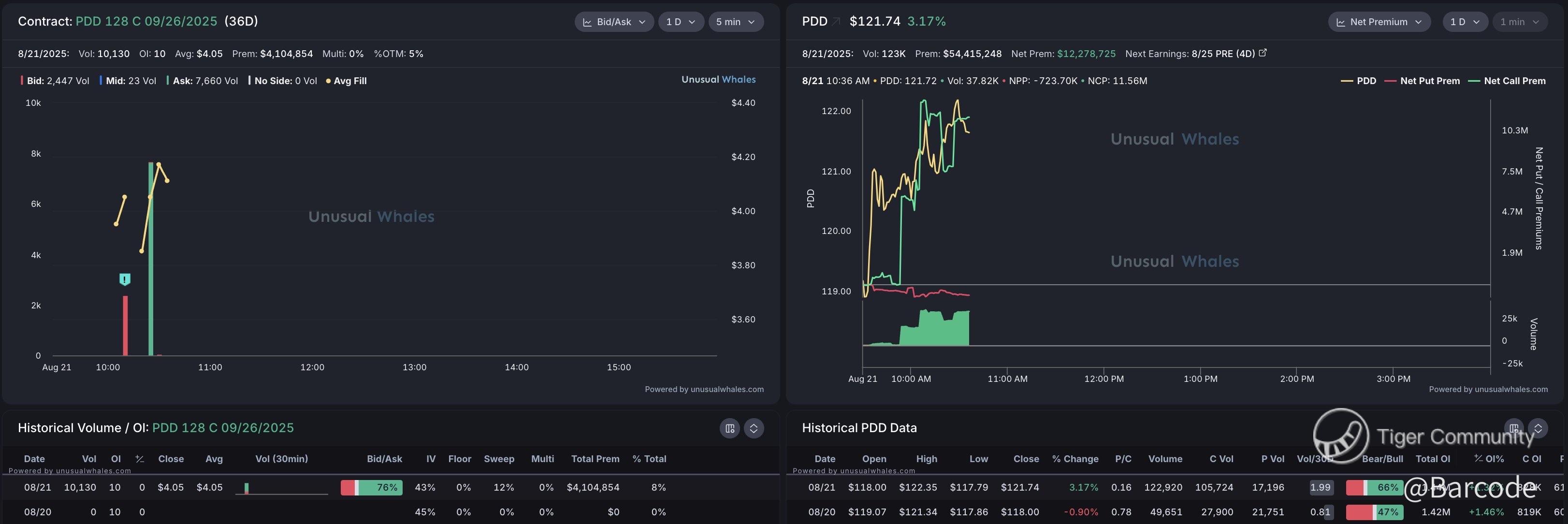 - Tui Jude·08-22TOPThe PDD options flow you added caught my attention, the premium and volume lining up so close to earnings feels like a very telling setup. I can’t help but link that back to how NVDA’s implied volatility was framed in your breakdown, and it feels like you’re showing how both setups rhyme. The way NVDA’s valuation tier was laid out against AMZN and GOOGL makes it all click.4Report