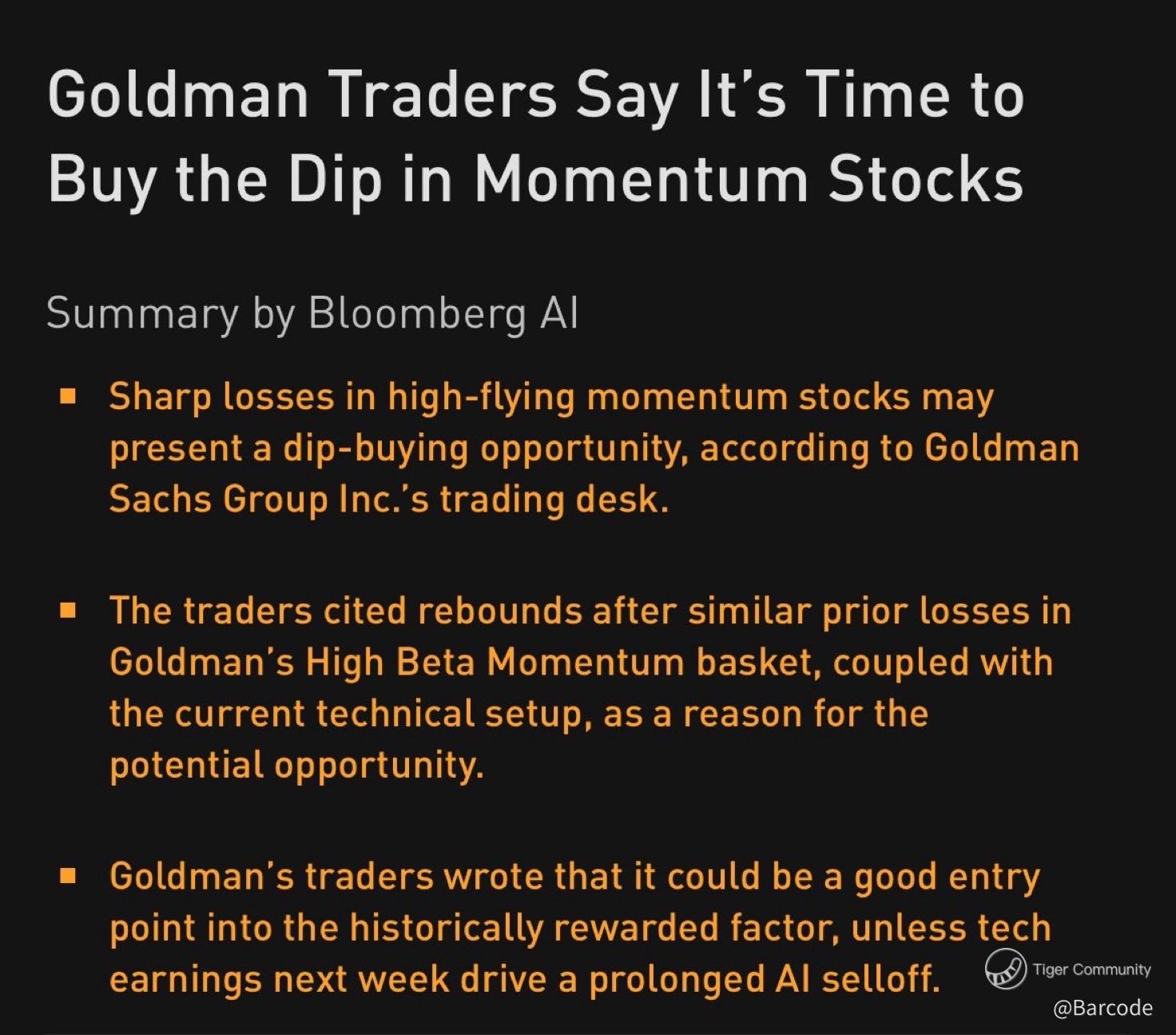 • Momentum: Goldman says “buy the dip” in momentum stocks.