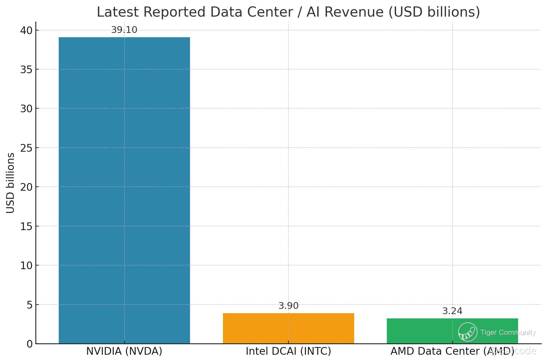 • Visual: NVDA 39.1B Data Center vs Intel 3.9B, AMD 3.24B.