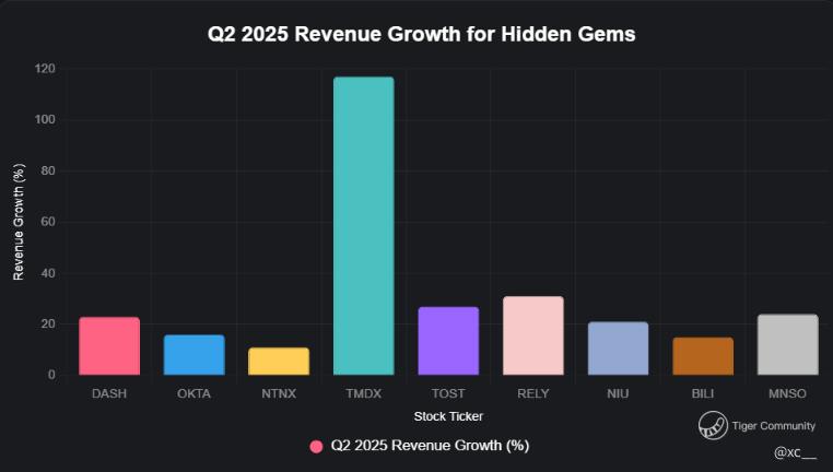 As Q2 2025 earnings season wraps up, a slew of high-growth companies are stealing the show, flipping from losses to profits and sparking investor frenzy. DoorDash ( $DoorDash, Inc.(DASH)$ ), Okta ( $Okta Inc.(OKTA)$ ), Nutanix ( $Nutanix Inc.(NTNX)$ ), TransMedics Group ( $TransMedics Group, Inc.(TMDX)$ ), Toast ( $Toast, Inc.(TOST)$ ), and Remitly Global (RELY) have turned heads with their turnaround tales, while Chinese ADRs like Niu Technologies (NIU), Bilibili (BILI), and Miniso (MNSO) offer global flair. With the S&P 500 at 6,466.58 and Bitcoin at $124,002 adding momentum, these under-the-radar plays boast outsized gains, like NIU’s 30% surge on profitability and MNSO’s 6% pop on toy revenue. The VIX at 14.49 signals calm, but tariffs (30% on EU/Mexico, 35% on Canada) and oil at $75/barrel inject caution. Which ones deserve more attention, and are they your next portfolio stars? This deep dive explores their earnings triumphs, market potential, and strategies to seize the upside.