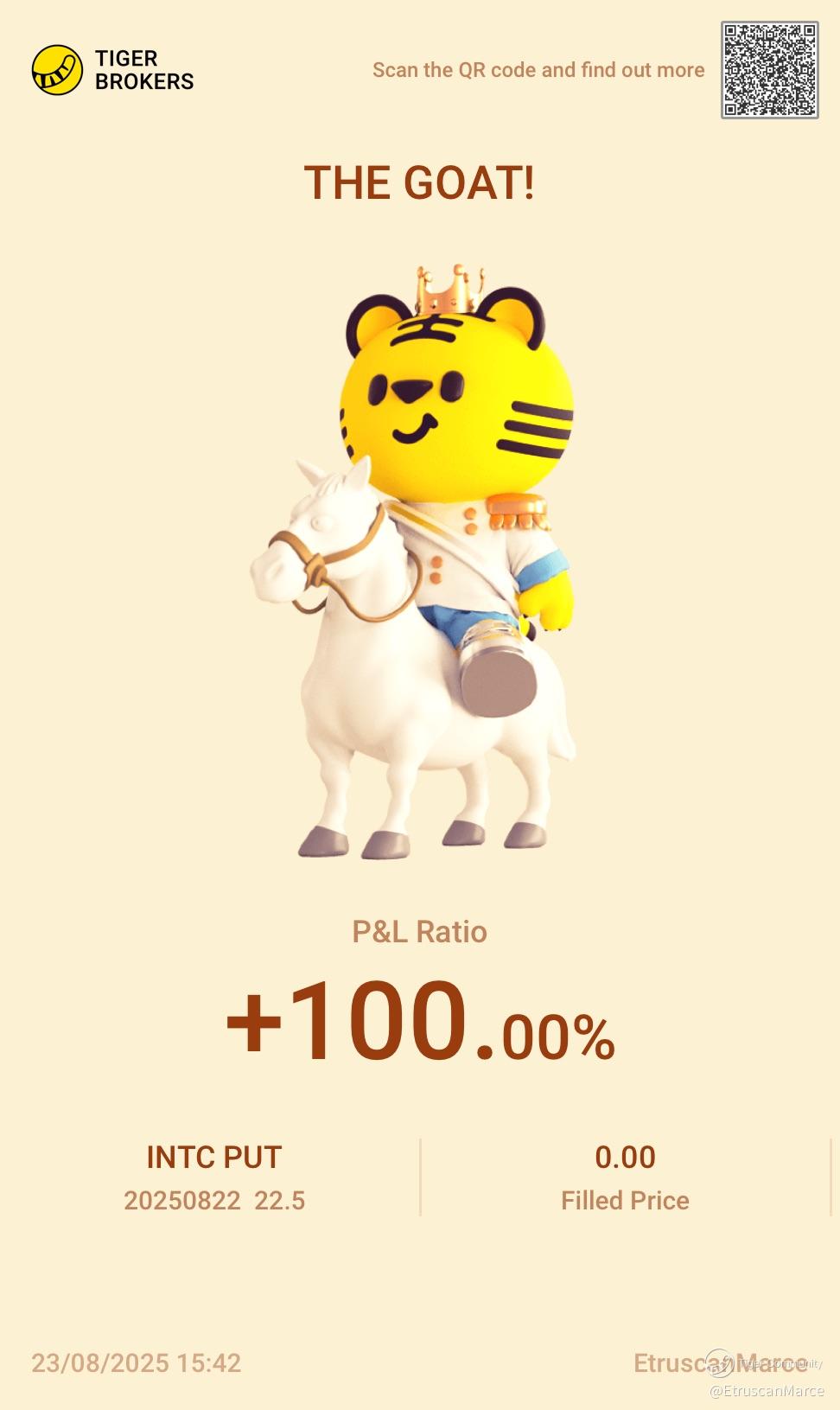 $INTC 20250822 22.5 PUT$ collected full premium. stock rebounded after the softbank and us gov news. might continue to sell again next week. will see the risk and reward.