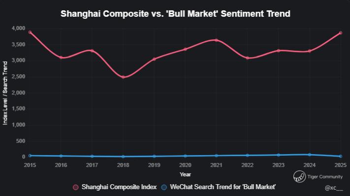 Sentiment Gap: WeChat trends show "bull market" searches at half last year's peak, with posts found on X reflecting bearish views like "fake out" amid weak economic data (high unemployment at 5.2%, falling property prices down 5.3% YoY).
