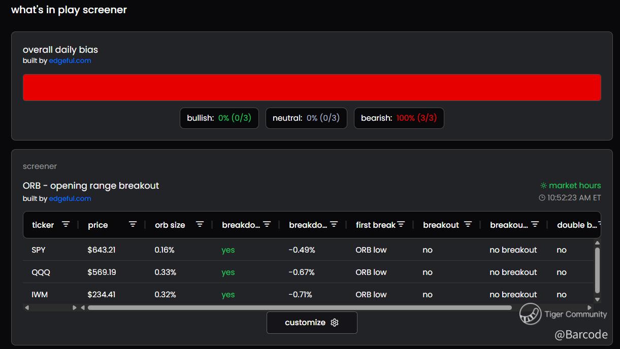 SPX is still climbing on CTA support per the MenthorQ chart, which explains the resilience. But Edgefulโs screeners line up with todayโs action:
