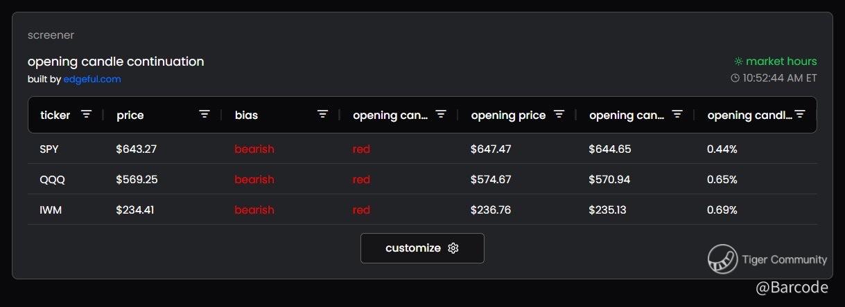SPY has already exceeded 94.7% of ADR and triggered opening candle continuation downside, giving mechanical confirmation to the selloff.