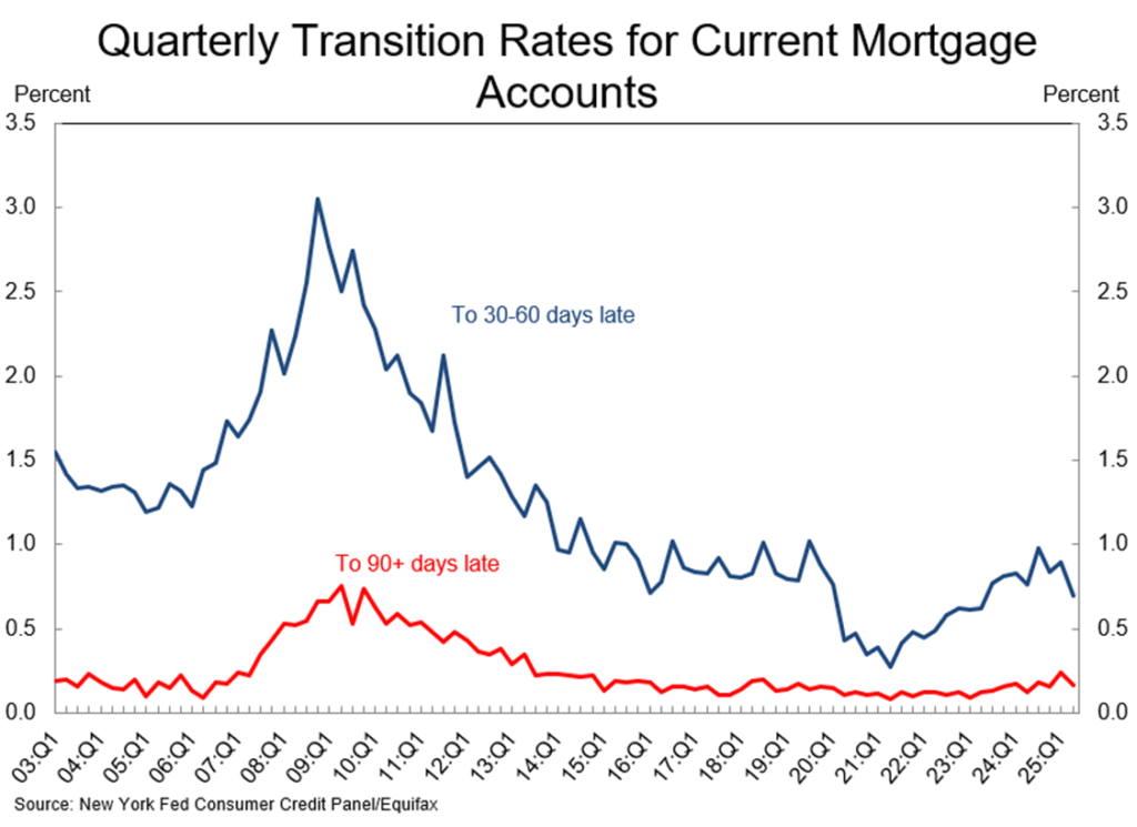 This drastically contrasts mortgage accounts, which despite a brief rise in early 2025, have continued to stay below pre-COVID levels are trending downward once again.
