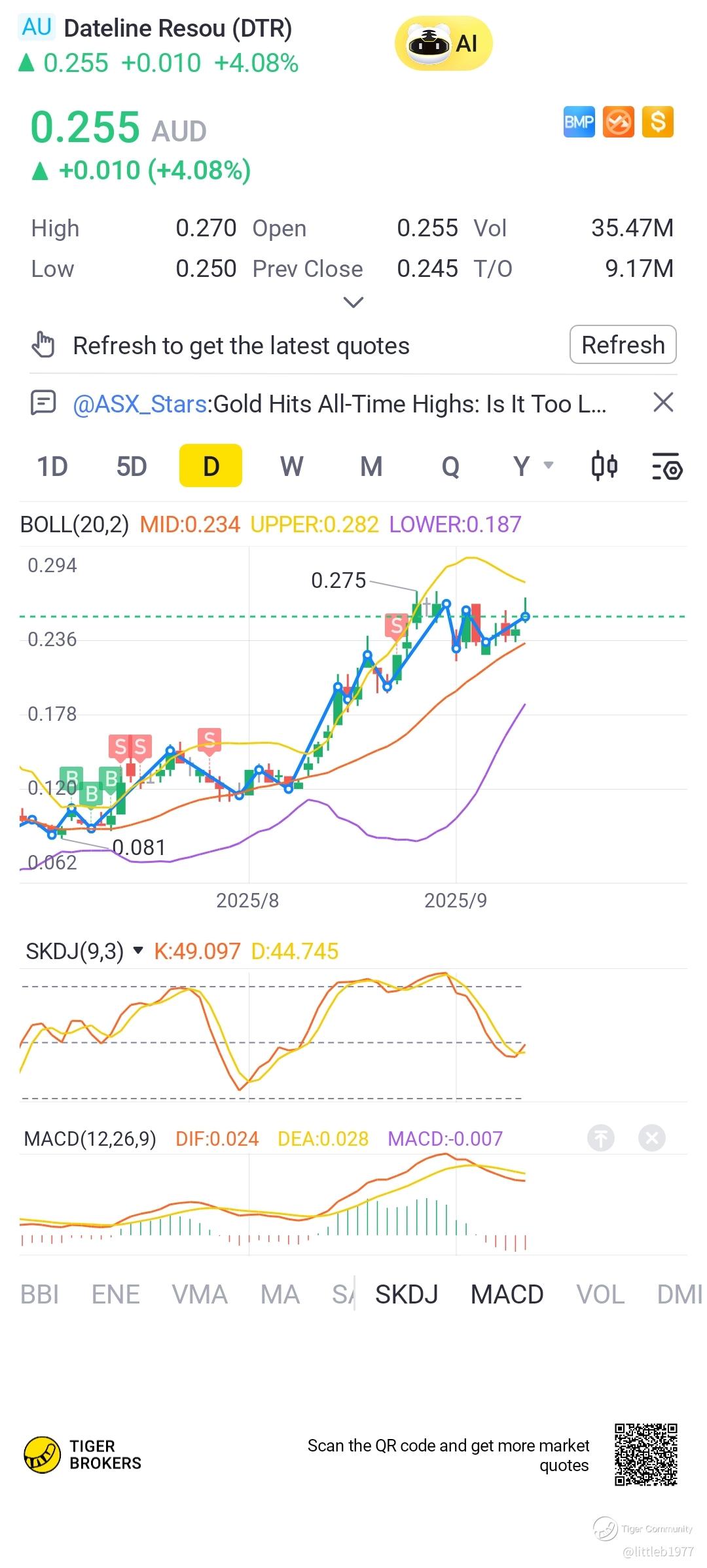 Long-Term (6β12 months): Supported by gold market strength, potential upside to 0.350β0.400 AUD.