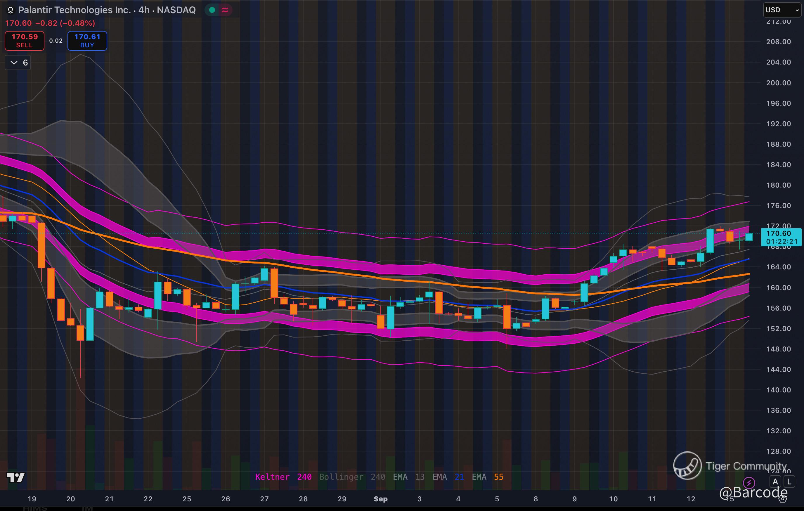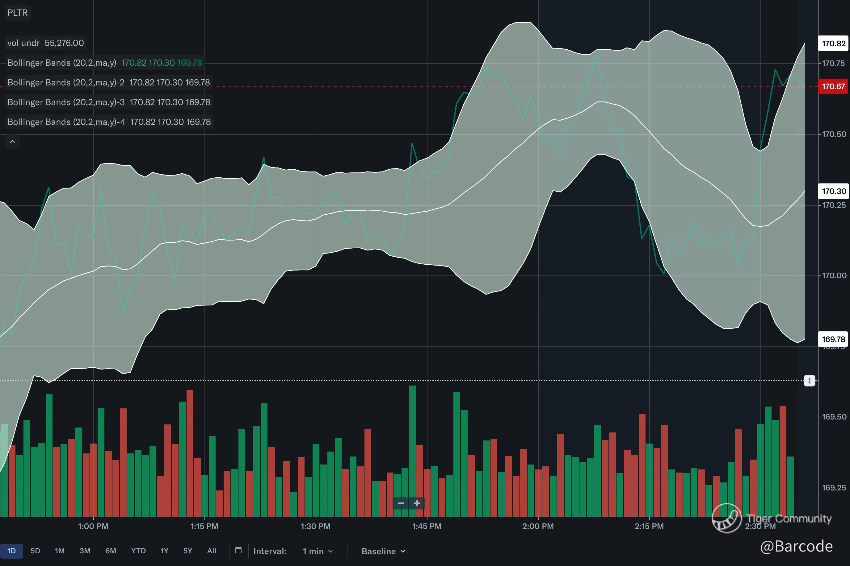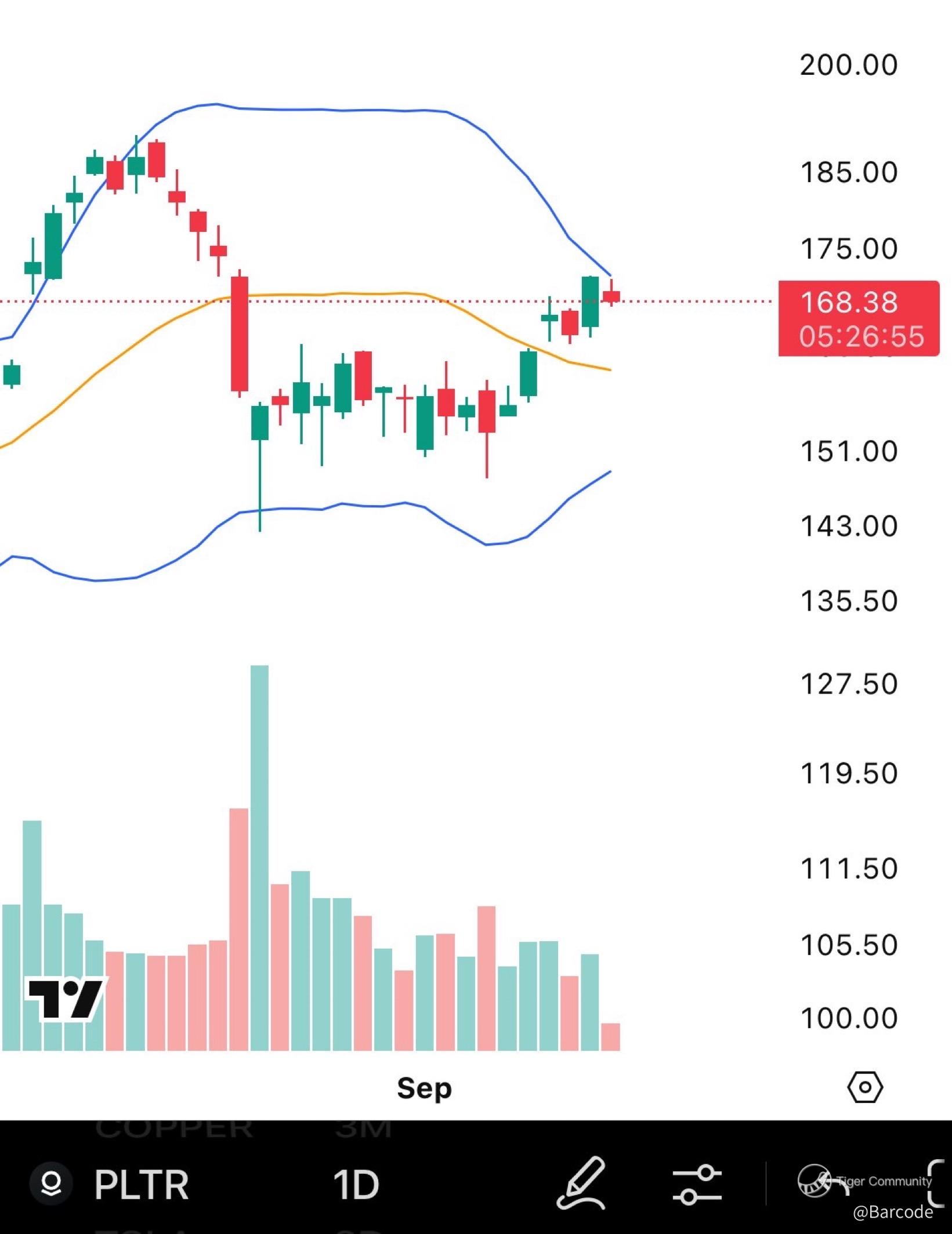 $Palantir Technologies Inc.(PLTR)$ π₯ππ $PLTR Bollinger Band Squeeze Retest at $168 πππ₯