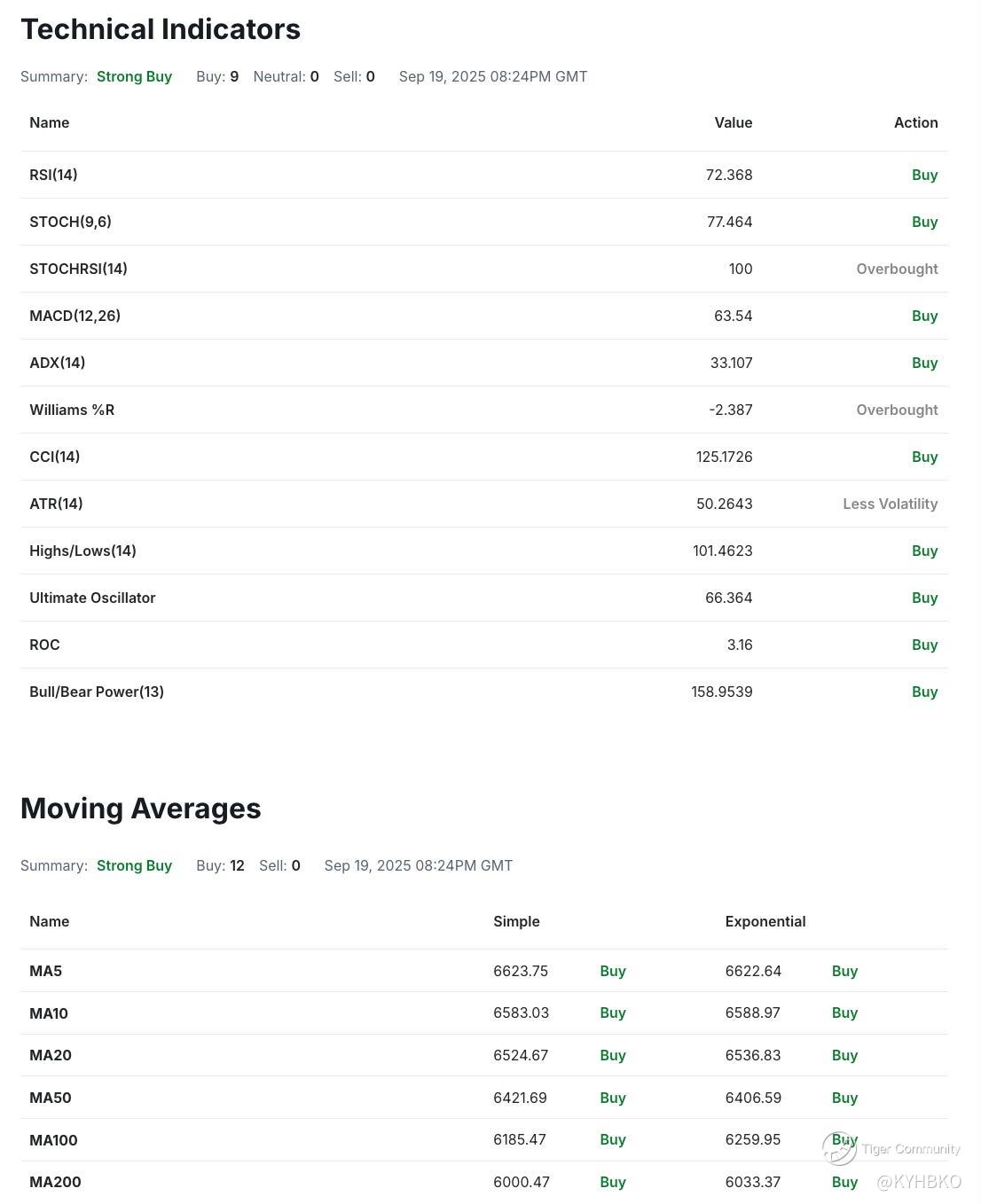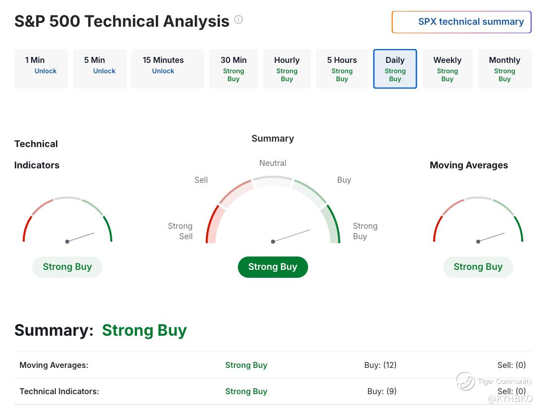 The technical analysis has a “Strong Buy” recommendation for the S&P500. 21 indicators recommend a “Buy” rating, and there are none with a “Sell” rating.