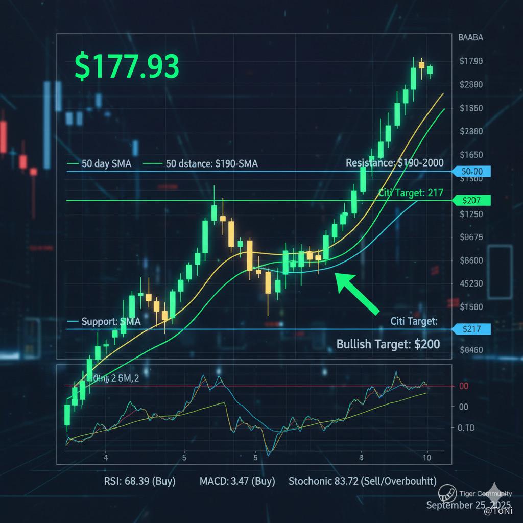 Alibaba’s fundamentals and technicals paint a compelling picture. The 26% cloud growth and global AI expansion validate Citi’s $217 target, while Cathie Wood’s stake adds credibility. For investors, holding is a solid strategy, with cloud-driven valuation upside potentially pushing the stock past $200. Short-term traders might wait for an RSI dip below 60 to enter.
