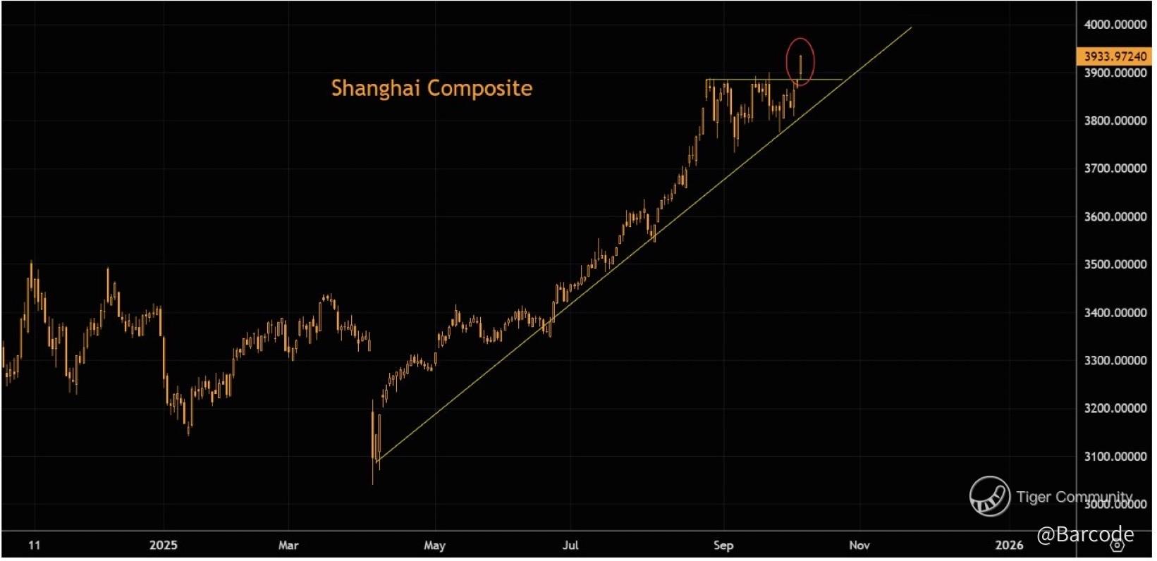 Iβm tracking how Chinaβs A-share market is reacting to renewed policy support, liquidity tailwinds, and improving risk appetite. A decisive break like this has historically triggered strong rallies in financials, commodities, and Chinese tech ADRs. Itβs not just a chart breakout; itβs a sentiment reset.