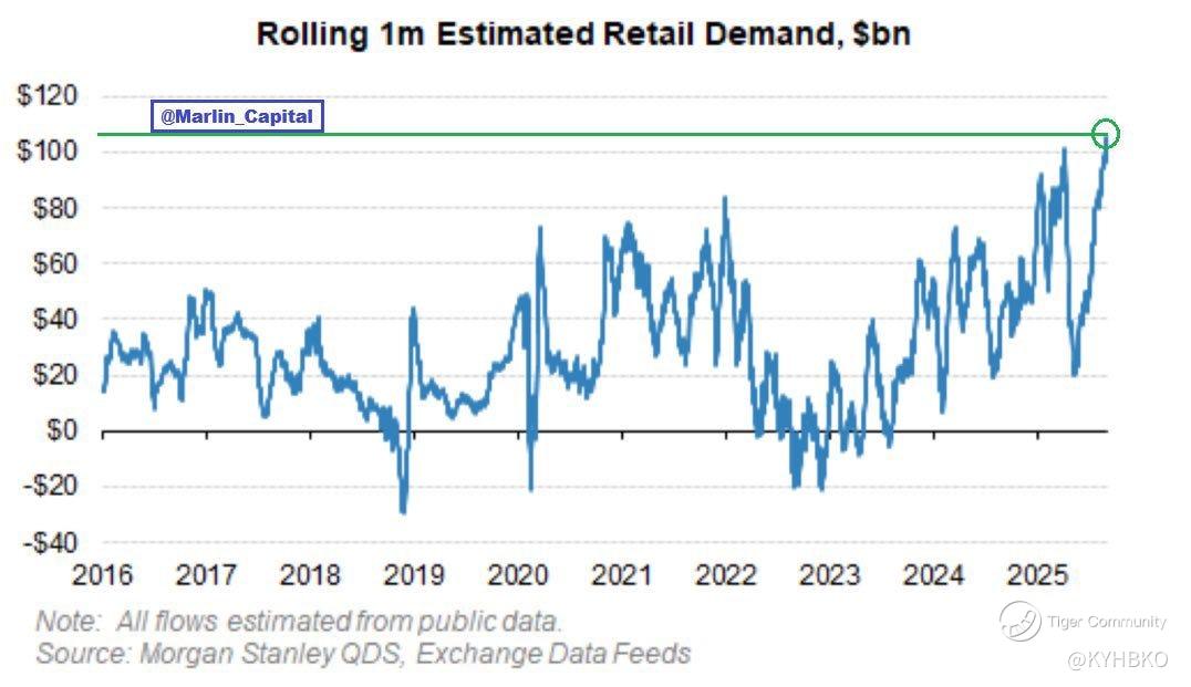 We may literally be entering a bubble. Last month, retail investors bought a record $100 billion worth of stocks. Given that the market was already expensive, they likely got caught up in FOMO and poured most of this money into already overvalued stocks, further stretching valuations. At some point, smart money will inevitably start dumping some of these overextended names to take profits and de-risk their portfolios. When that happens, retail investors will panic and flee the market faster than they bought in. This will likely trigger the long-overdue correction. It’s time to be more fearful than greedy. - X user The X Capitalist