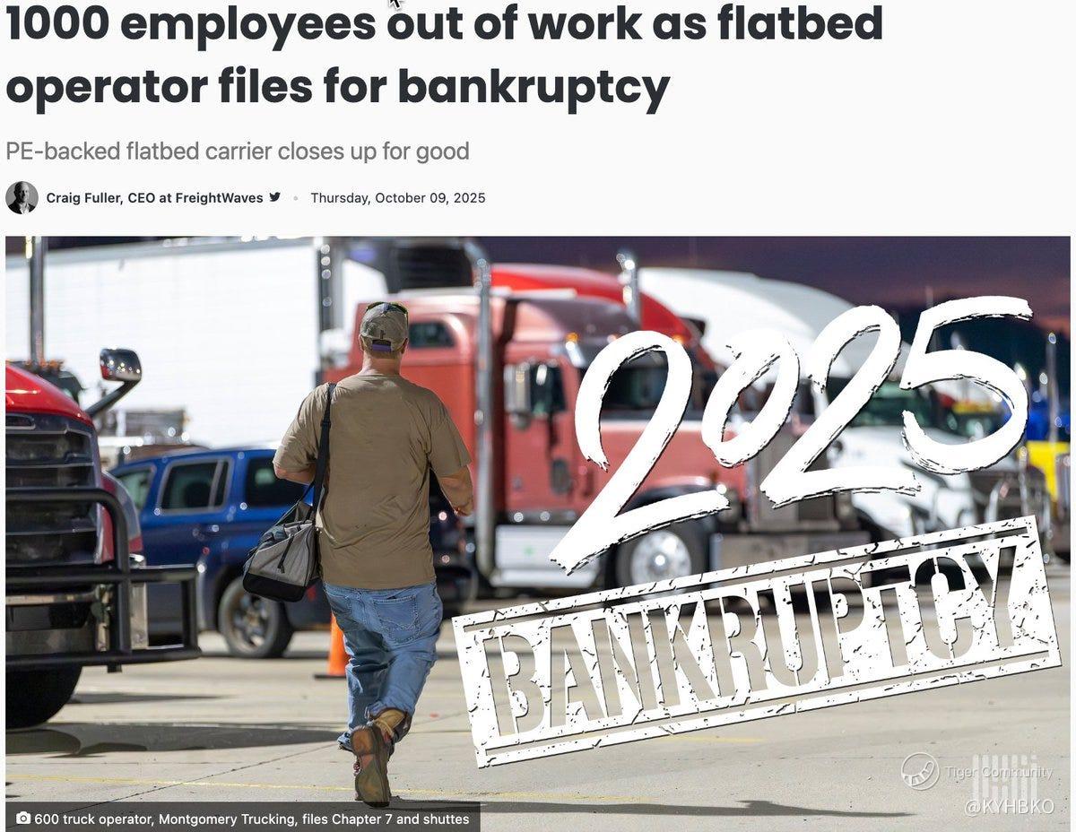 This is the largest trucking bankruptcy of the year - 1000 employees out of work at Montgomery Transport. - X user Craig Fuller