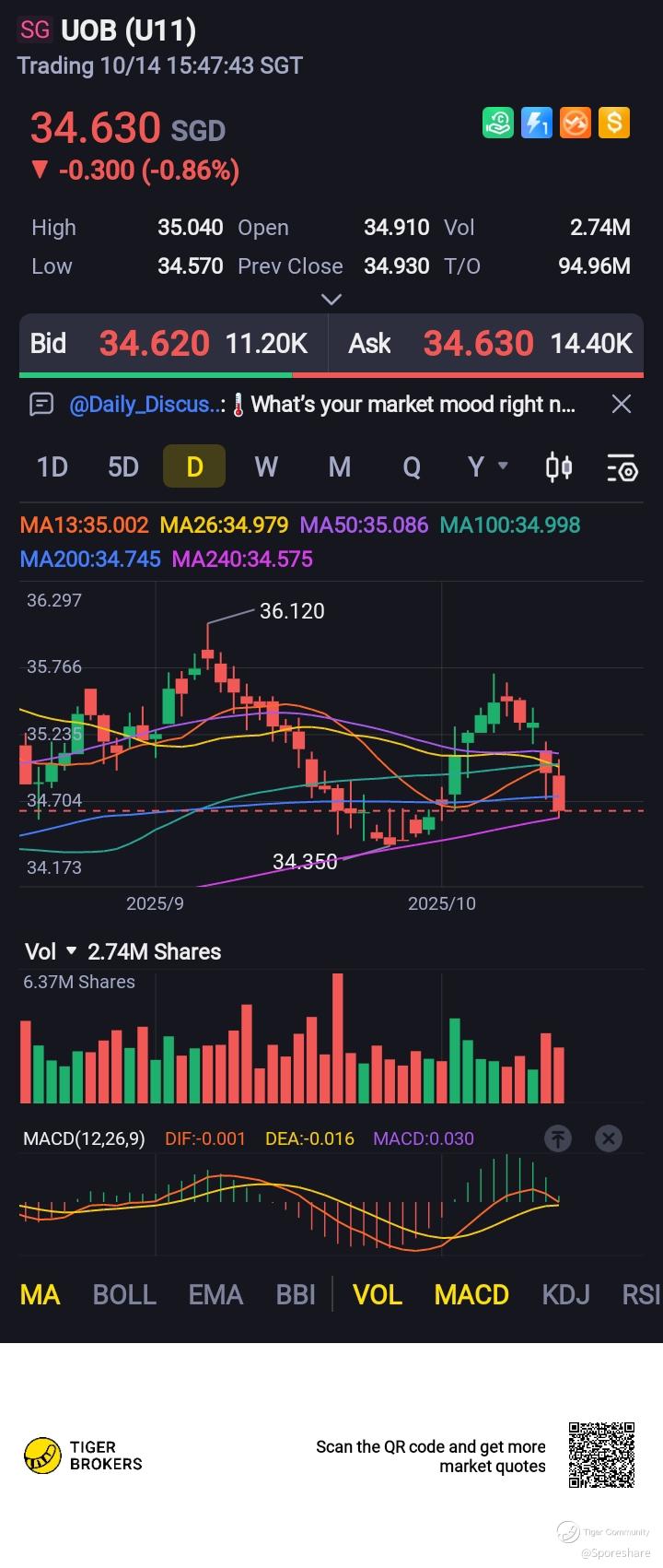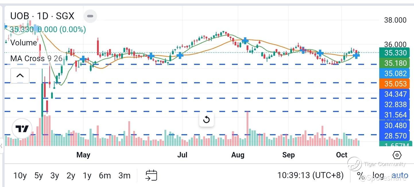 Uob bank, chart wise, with this new Trade tensions price may fall lower to test the recent low of 34.33.