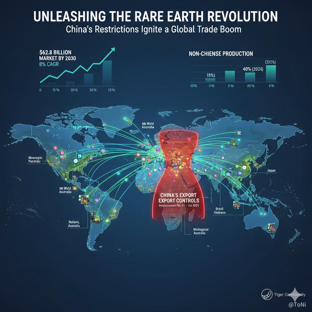 China’s rare earth restrictions, though disruptive, are forging a new global trade era. The entire value chain—from exploration to environmental innovation—will drive a multi-trillion-dollar boom. I am firmly bullish: by 2030, non-Chinese capacity will meet 40% of global demand, transforming trade deficits into growth engines. Investors should seize this historic shift by targeting $MP, $Lynas, and emerging players like $Texas Mineral Resources. The data is clear—the rare earth revolution is here.