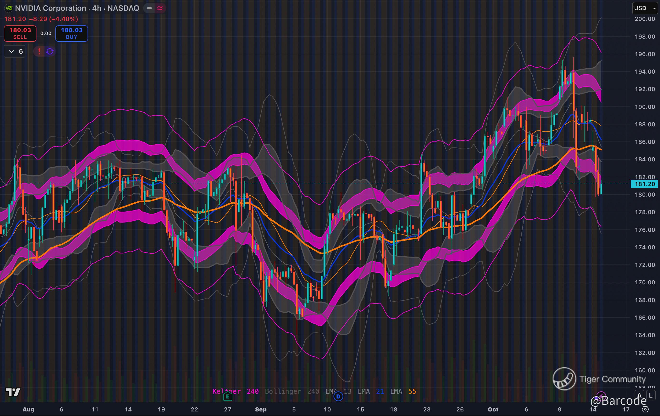 I’m calling this a defining moment for Nvidia. The clean, full-bodied marubozu breakdown on 14Oct25 wasn’t just a bad day; it was a decisive momentum shift that sliced through a multi-month shelf in the mid-$180s, forcing weak hands out and signalling that control has swung sharply to the bears.