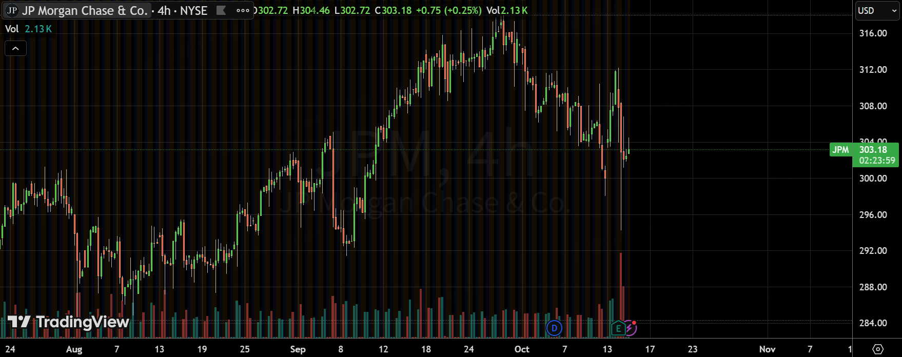 JPMorgan's P/E ratio stands at approximately 12 times (above the industry average of 10 times), implying 8-10% profit growth. However, its stock price fell 1.86% to $302.08 on October 14, potentially reflecting full market pricing and concerns over non-bank financial institution (NBFI) risks.