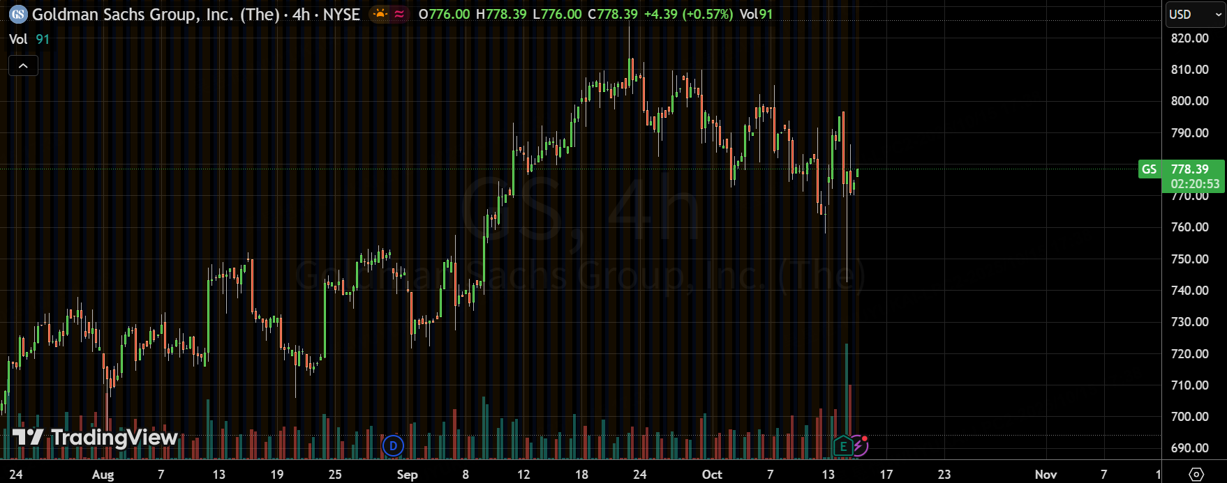 Goldman Sachs trades at a P/E ratio of approximately 14 times, with its stock price declining 2.04% to $770.76. This implies a continued rebound in investment banking activity, but could be overvalued if M&A activity slows. Compared to Morgan Stanley (P/E 13 times), its AWM growth is more stable.