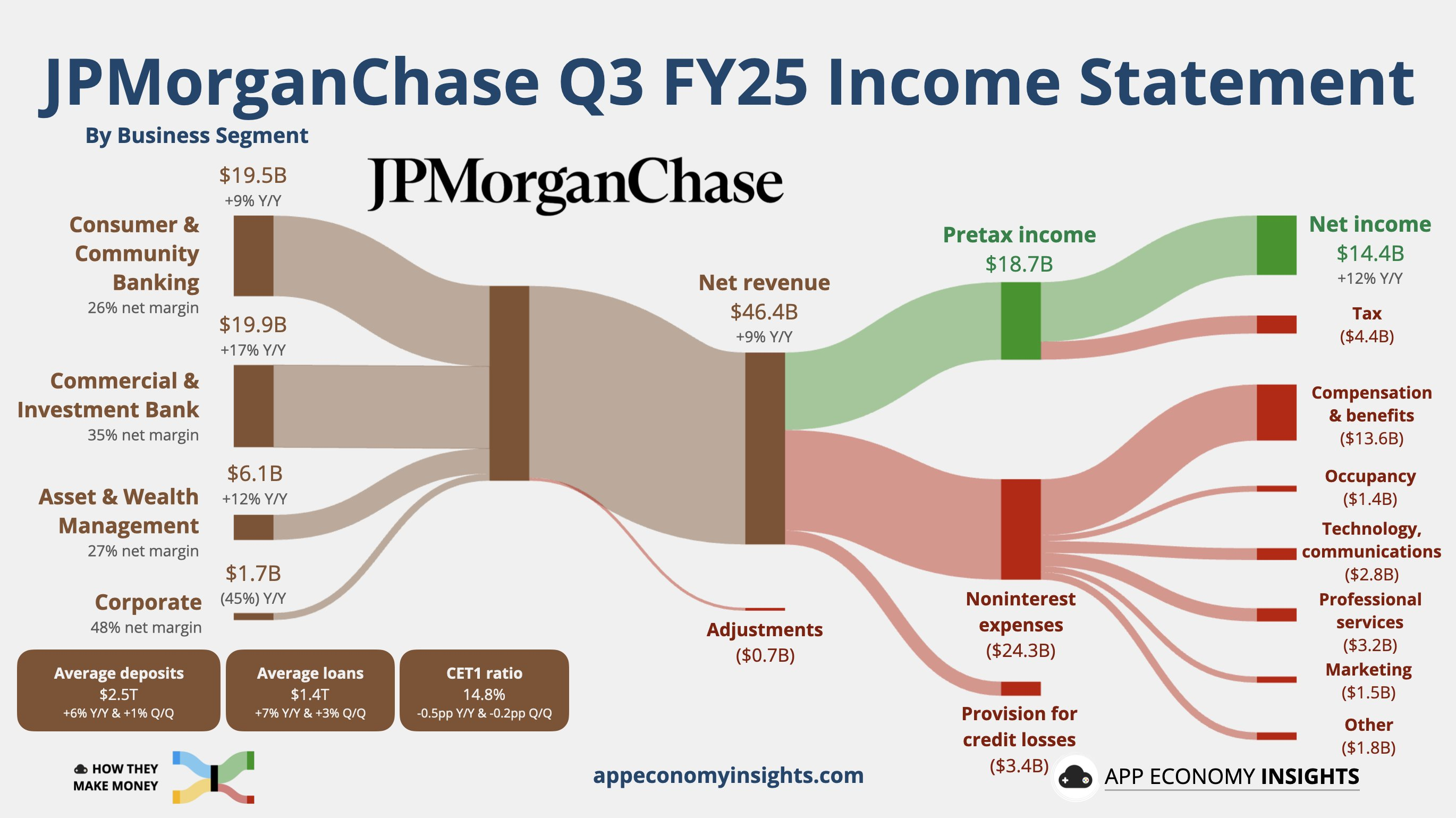 Investment banking has seen a return of "animal spirits." Investment banking fee income rose 16% year-over-year, with equity financing revenue surging 33% and M&A pipelines showing clear recovery. Dimon stated that the market's "animal spirits are reviving."