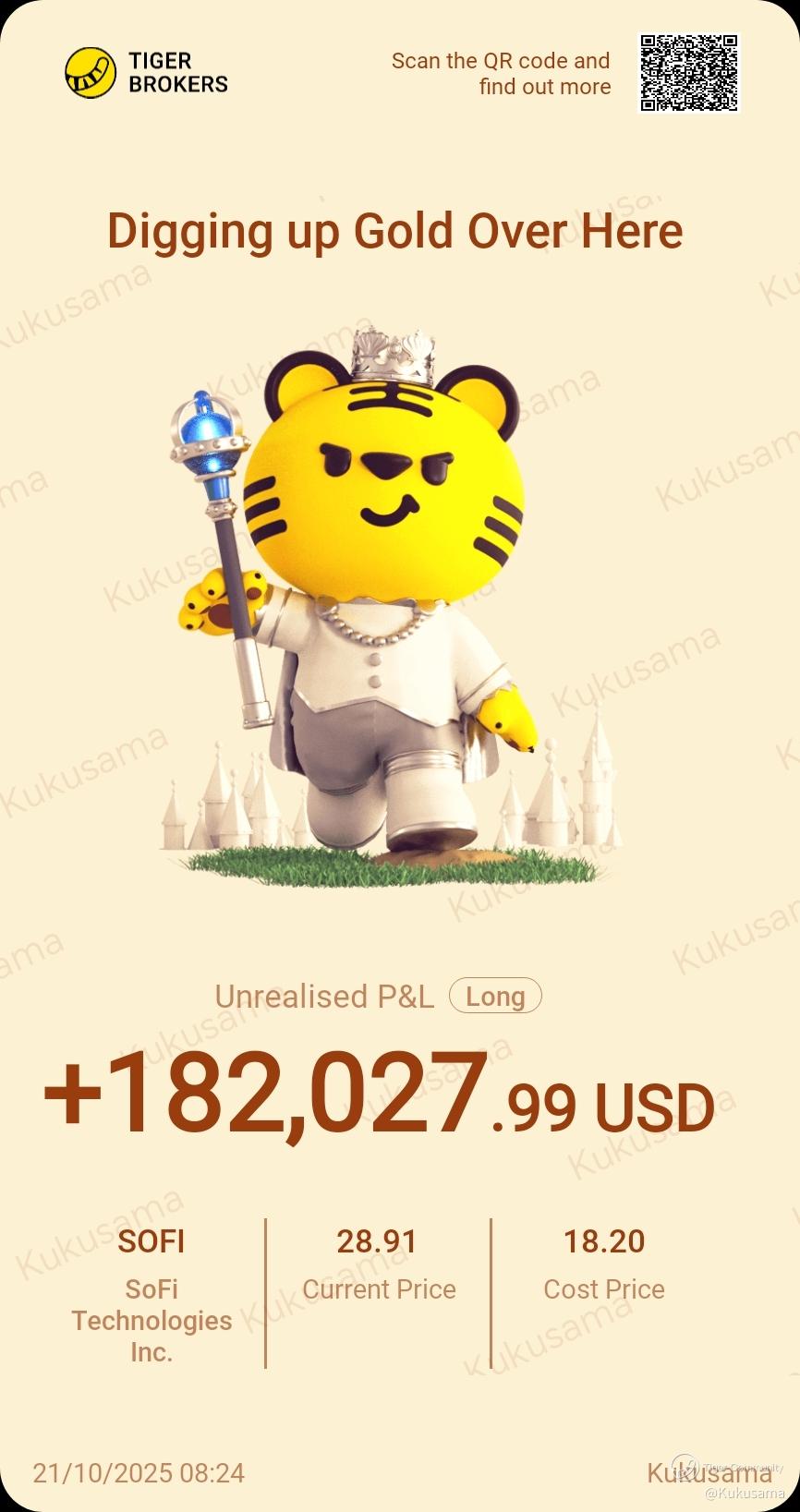 $SoFi Technologies Inc.(SOFI)$ 17000 shares, going to farm another 3000 shares with my profits from options. Riding all the way!