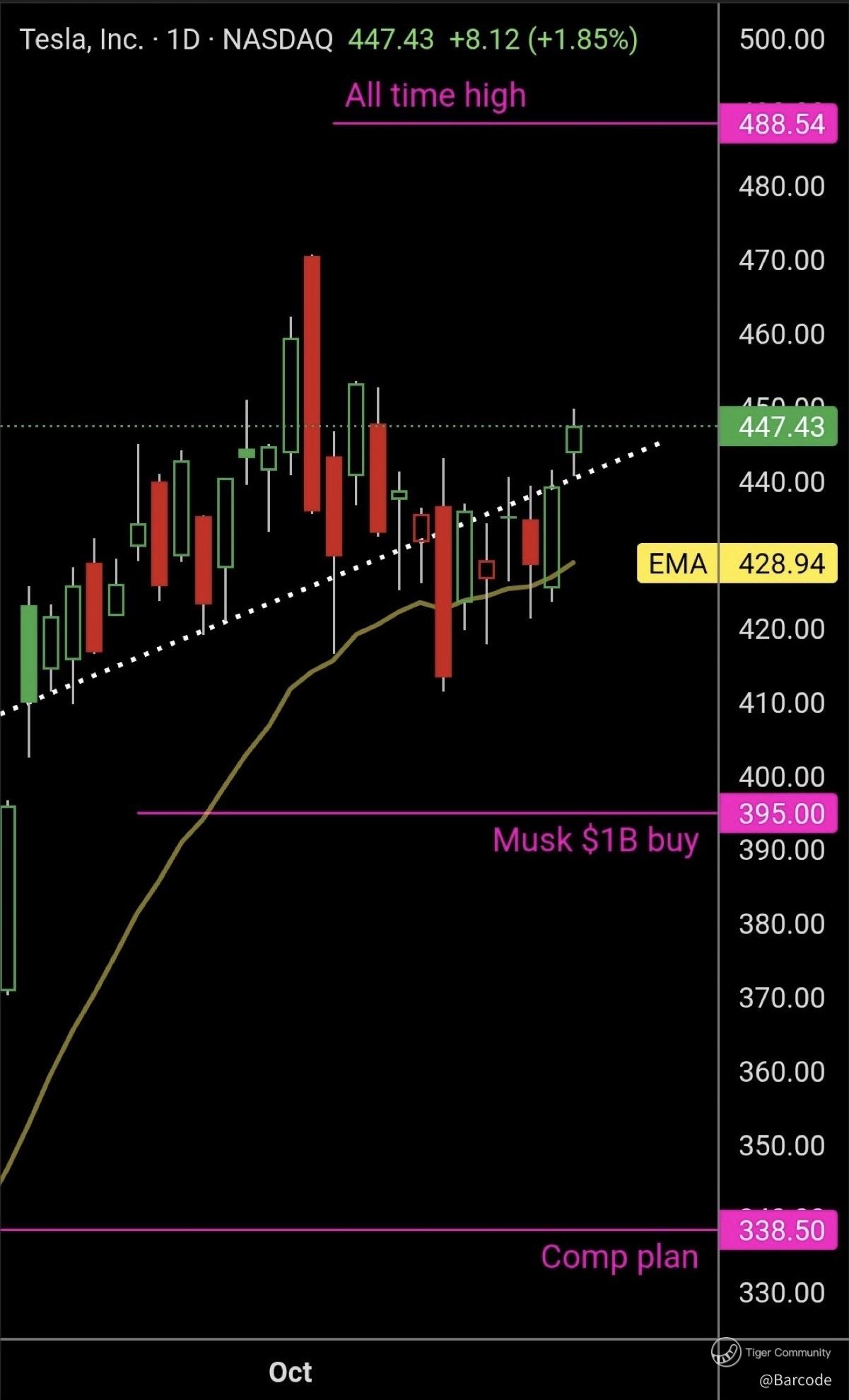 • $395.00 – Elon’s $1 billion buy zone, the conviction anchor.