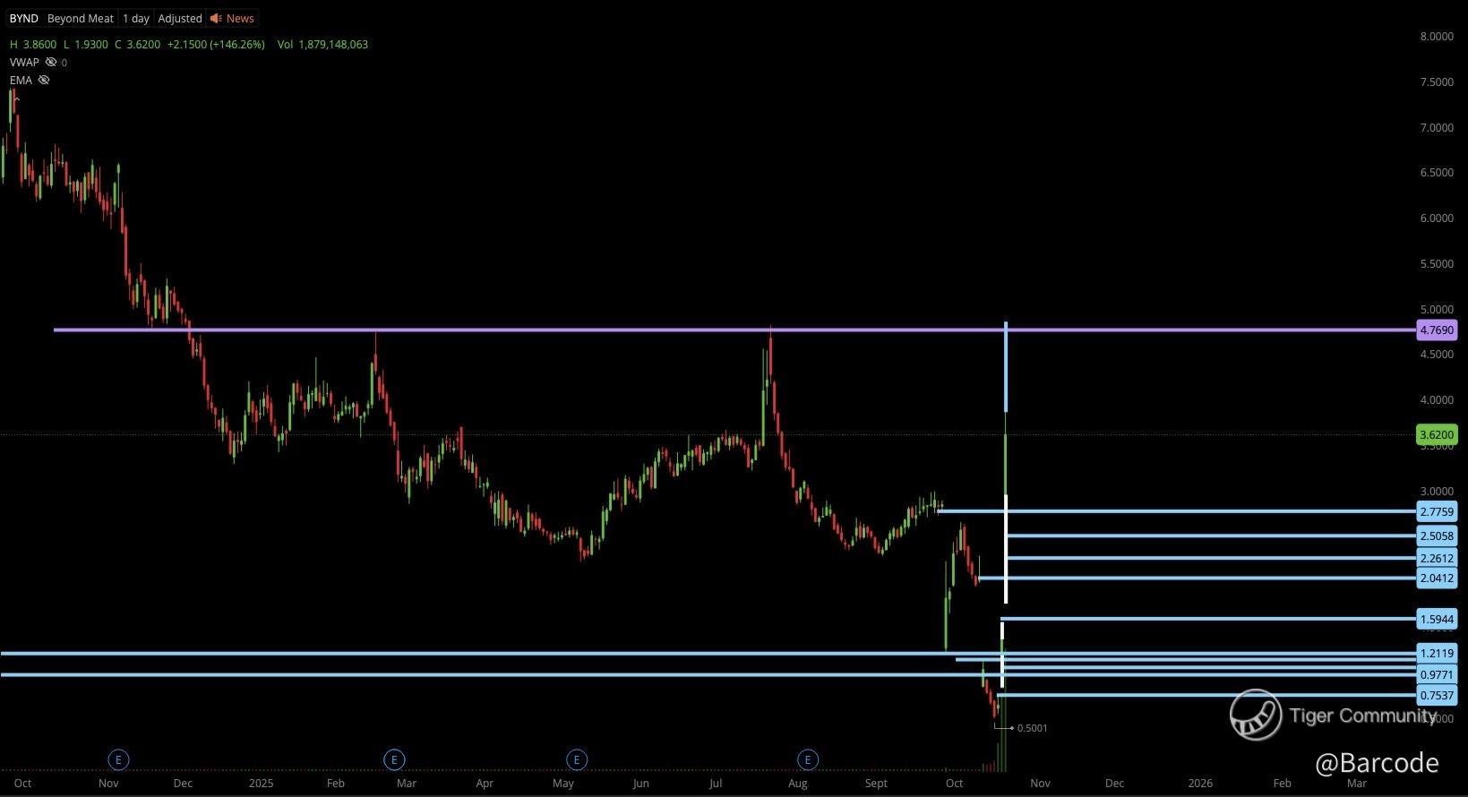 π $4.80 is the pivot from 2024. We failed there twice. Iβm watching for a clean break and hold; above it the path to $6+ opens as momentum algos flip long and shorts scramble. Iβve seen this sequence before on $BYND; when accumulation finally shows, the move can outrun logic.