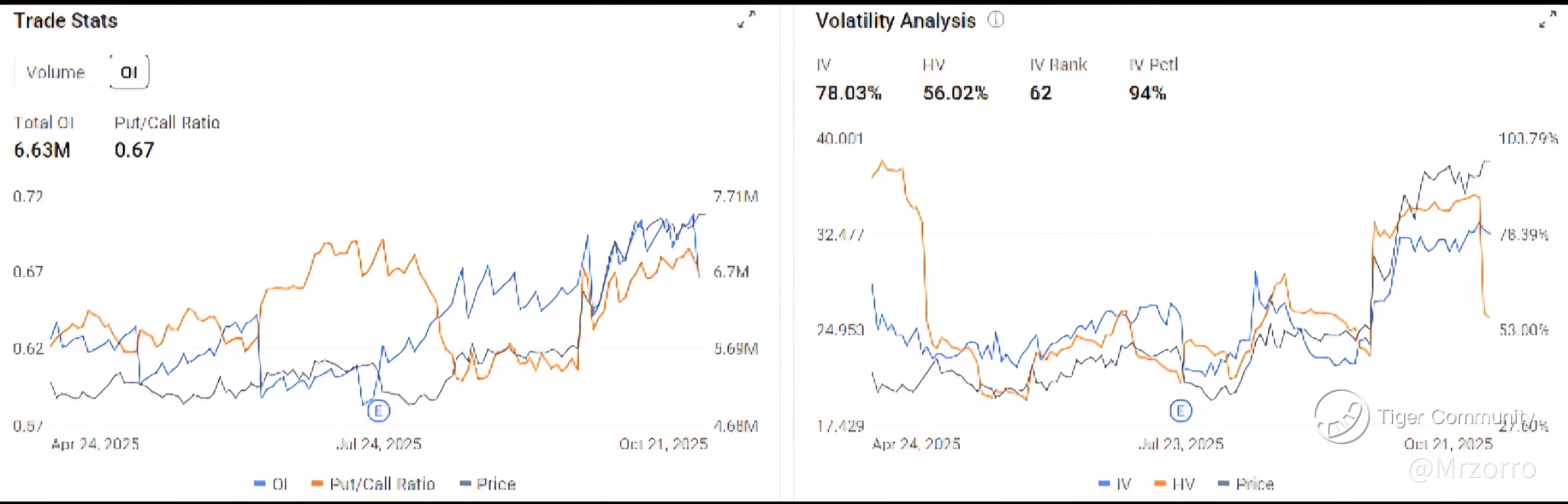 However, this optimism comes at a very high price. The market is bracing for fireworks, as evidenced by an Implied Volatility of 78.03%. The 94th IV Percentile is the critical number, indicating that options are more expensive now than they have been 94% of the time over the past year.