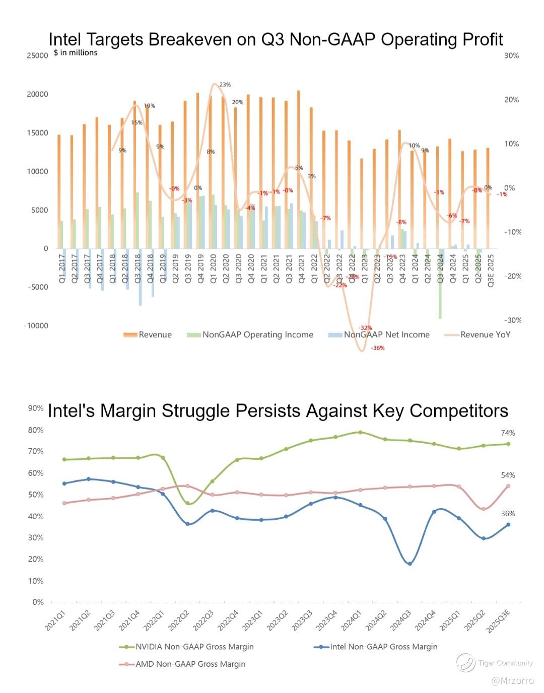 Following Nvidia's investment aimed at strengthening X86 collaboration, the market is anticipating a recovery for Intel in both arenas, though the process is expected to be lengthy. Consensus estimates project Intel's Q3 data center revenue will decline 4% YoY, potentially falling behind AMD's.