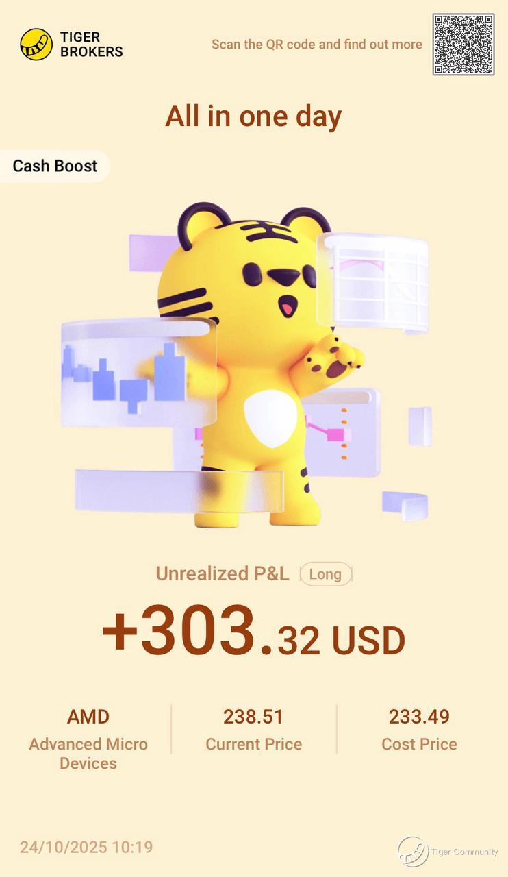 $Advanced Micro Devices(AMD)$ Since scoring that external funding, AMD has been on a steady climb – booked some decent gains. With AI driving insane demand for its chips, the next major upswing seems imminent. Bullish in the future!