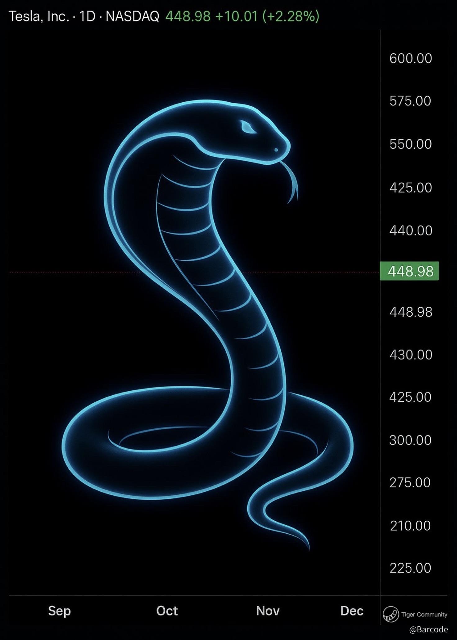 Iβm patient, but ready. Once volume and volatility lock in rhythm, the viper strikes; and Tesla doesnβt nibble, it devours resistance.