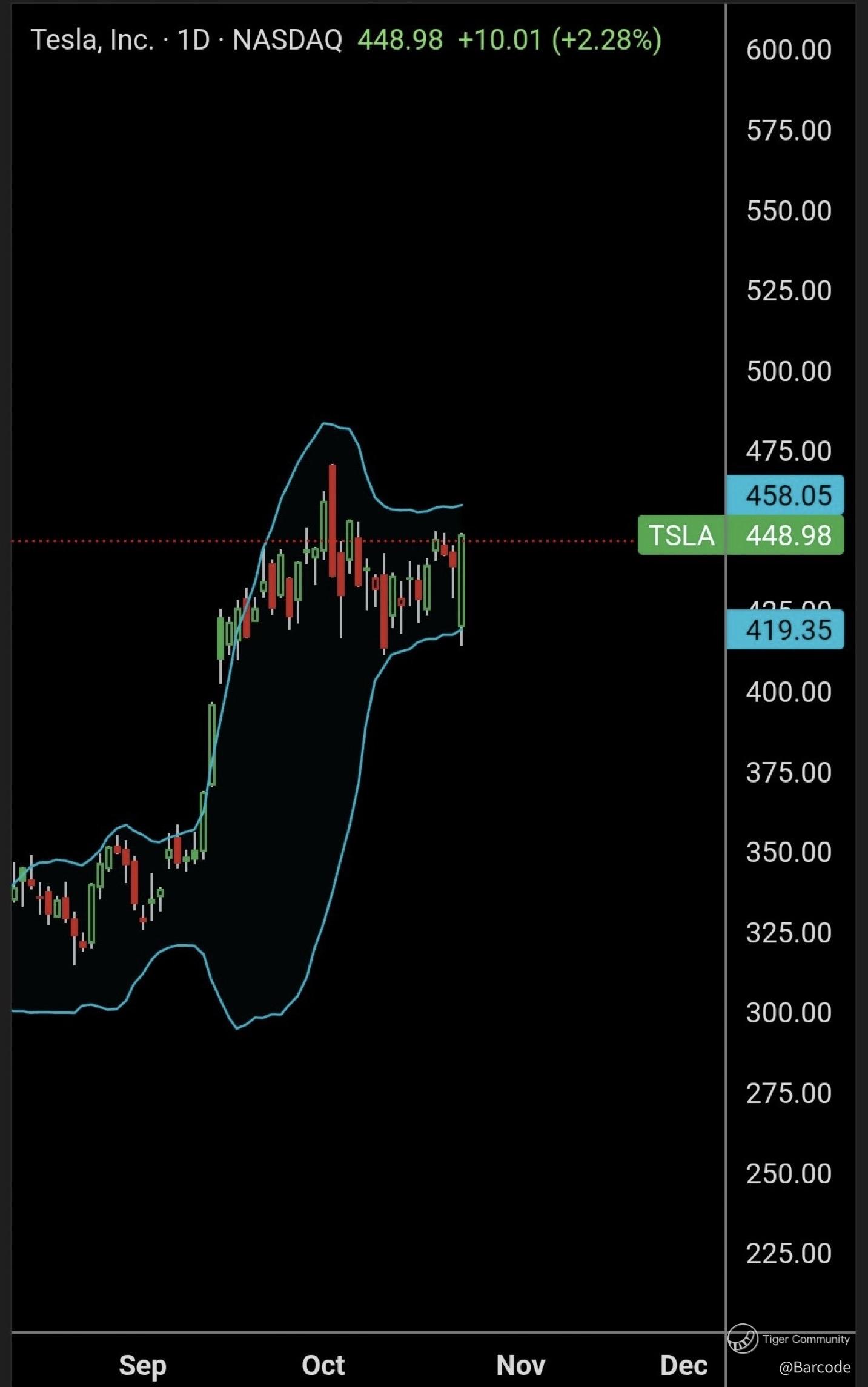 This chart is art in motion; price dancing between kinetic compression and explosive potential. The year-high sits near $488.54, and above $458, airspace opens toward that peak. The true ignition begins when volume and volatility sync, a combination that has historically triggered Teslaβs parabolic rallies.