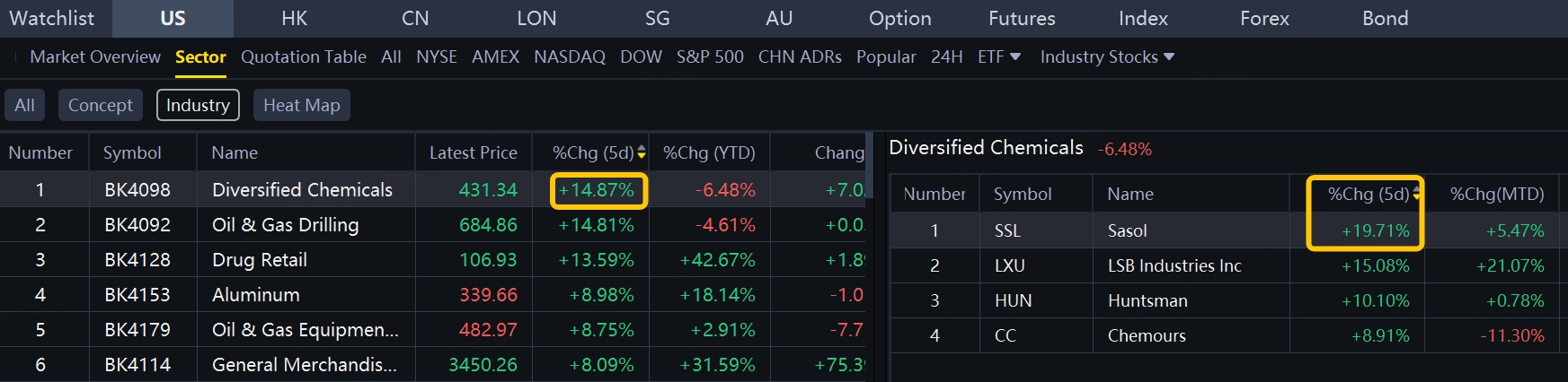 The best-performing concepts is Diversified Chemicals. Considering the different perceptions of the stock, this time TigerPicks chose $Sasol(SSL)$ to have a fundamental highlight to help users understand it better.