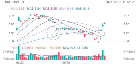 In the past five days, $Sasol(SSL)$ 's share price has risen by 19.71%.