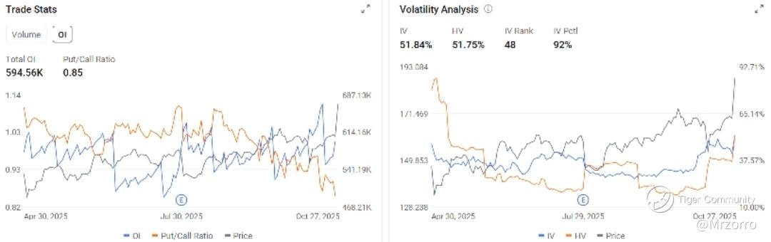 Tellingly, the Implied Volatility (51.84%) has now perfectly converged with the rising Historical Volatility (51.75%). This suggests the market believes the stock's new, higher-volatility regime is not a one-day affair but the new normal. In short, the AI news has reset market expectations, and options traders are paying a high price to bet that this new upward trend has legs.