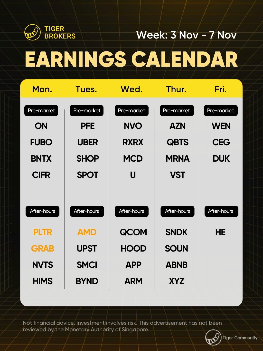 2. Earnings ahead: $Advanced Micro Devices(AMD)$ $Qualcomm(QCOM)$ $ARM Holdings(ARM)$ $HKEX(00388)$, all set to move markets.