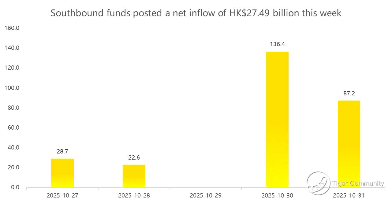 Despite the slump, mainland investors kept the faith. Southbound funds inflows hit HK$27.49 billion this week, showing steady confidence in Hong Kong assets.