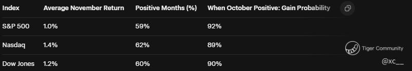 But the real question burning up trading floors: Can the legendary November effect still deliver in a market that's already scorching? Savvy players often pile back in post-Halloween, chasing seasonal tailwinds that historically turn this month into a profit machine. With October closing strong, the odds stack even higher—past patterns show a 92% chance of gains when the prior month ends positive. This isn't just folklore; it's backed by decades of data where November consistently ranks as one of the strongest periods, averaging solid returns while shaking off summer slumps.
