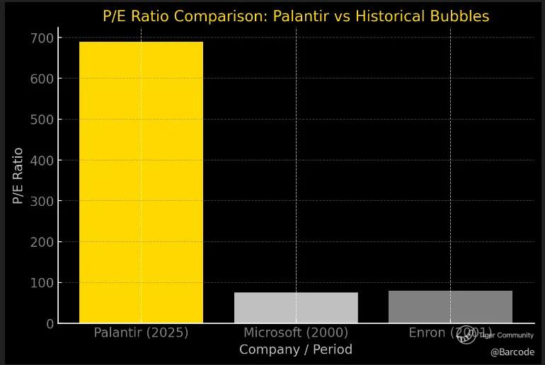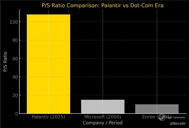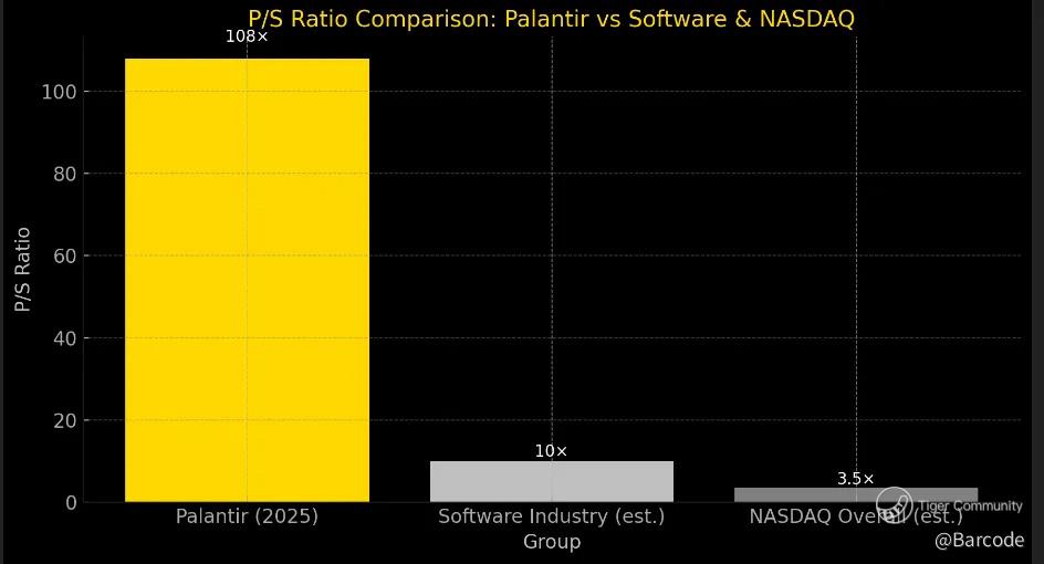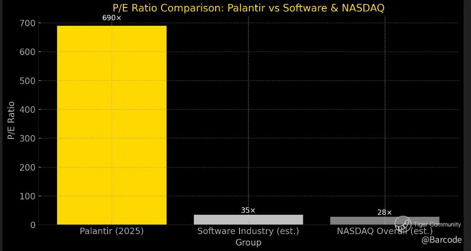 • Software industry average P/E ~35×; Nasdaq ~28×. PLTR’s multiple reflects a narrative premium rather than pure metrics.