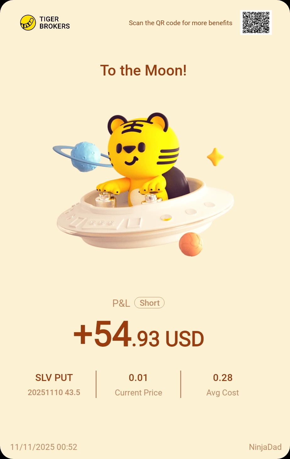 $SLV 20251110 43.5 PUT$ Silver rebounding, keep selling SP