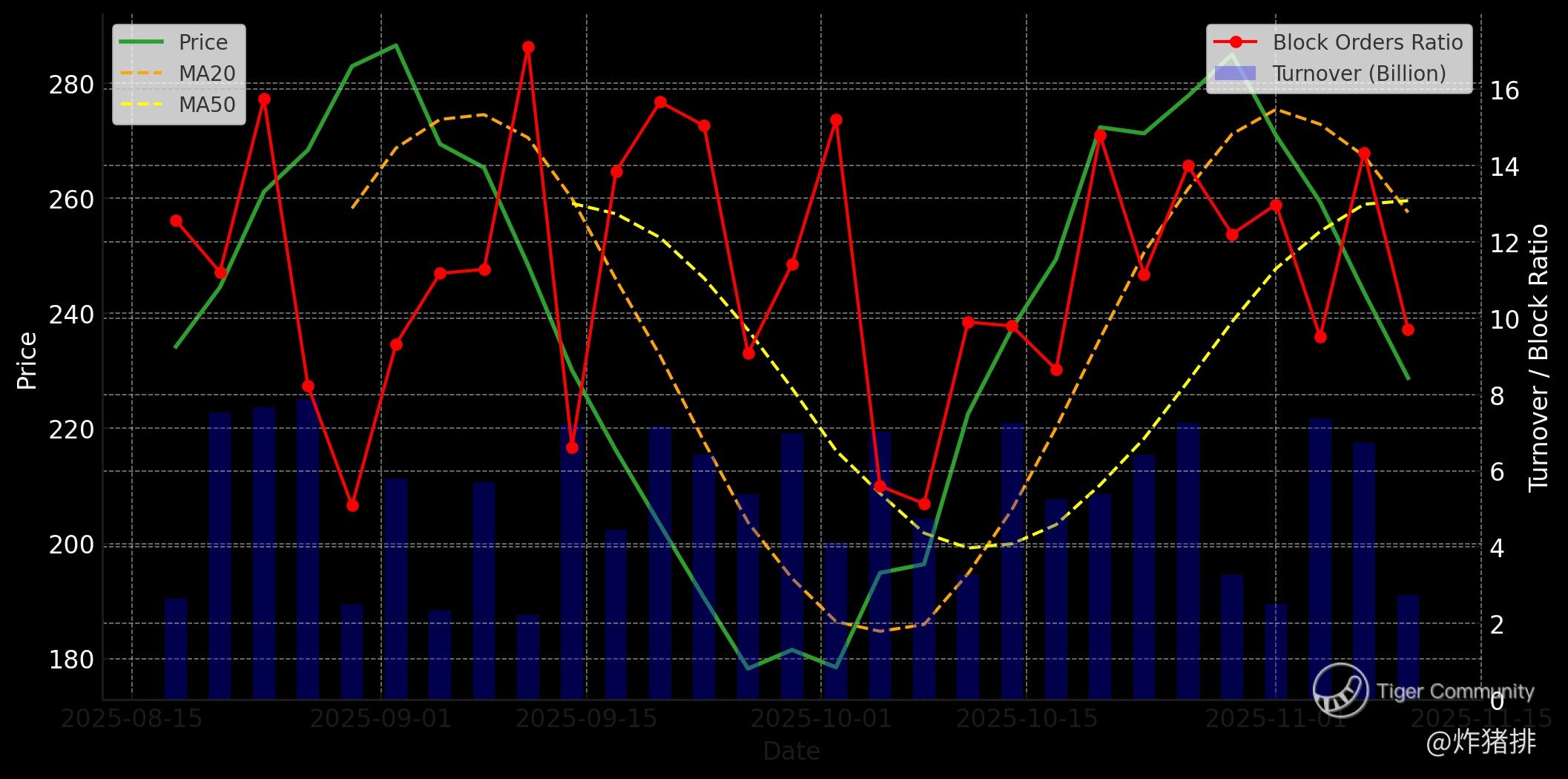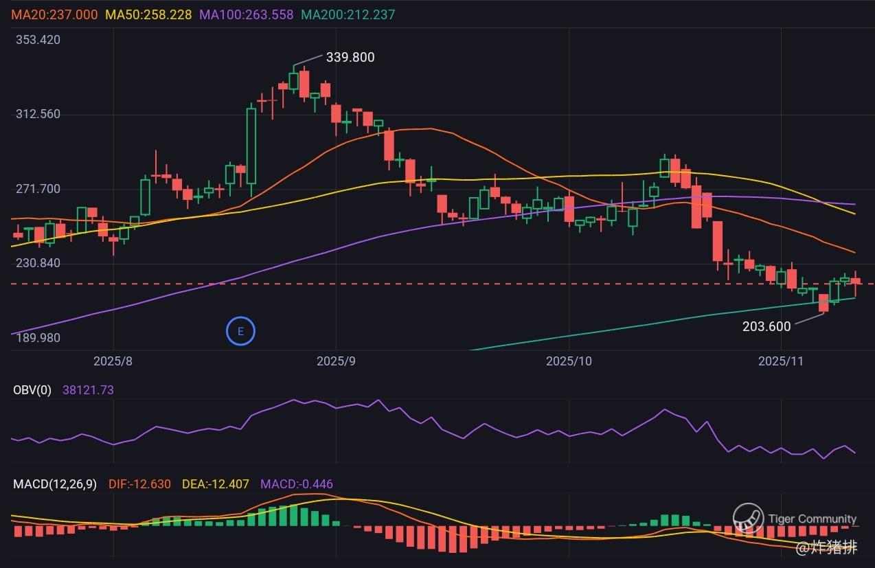 $POP MART(09992)$ The short-term MA are below the long term MA, confirming a bearish trend. MACD is still negative, but histogram shows a slowing bearish momentum. Some days suggest strong institutional trading activity with frequent short bursts of buying and participation remains evaluated with volume. Morgan Stanley maintains a target price of HKD 382 for the company, with an Overweight rating. Will price rebound if 200 – 210 continiues to hold positivity? Worth the try.