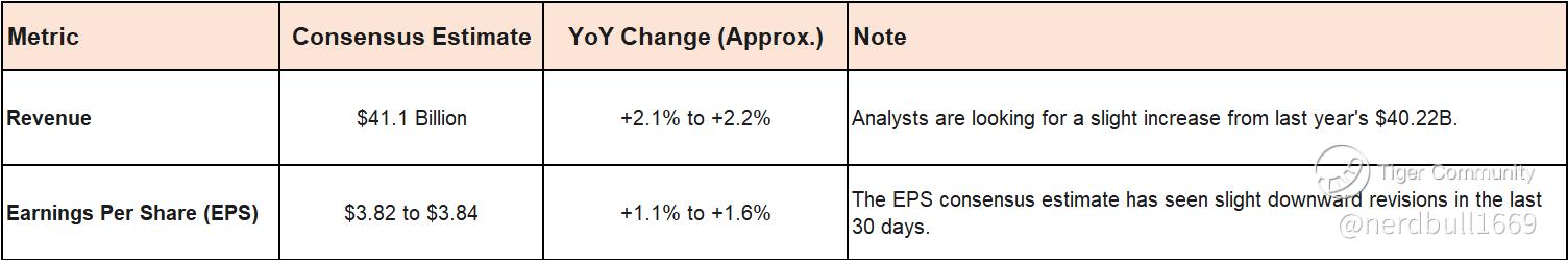 The general consensus suggests a modest increase in the top and bottom lines year-over-year, but concerns remain about the pace of discretionary spending.