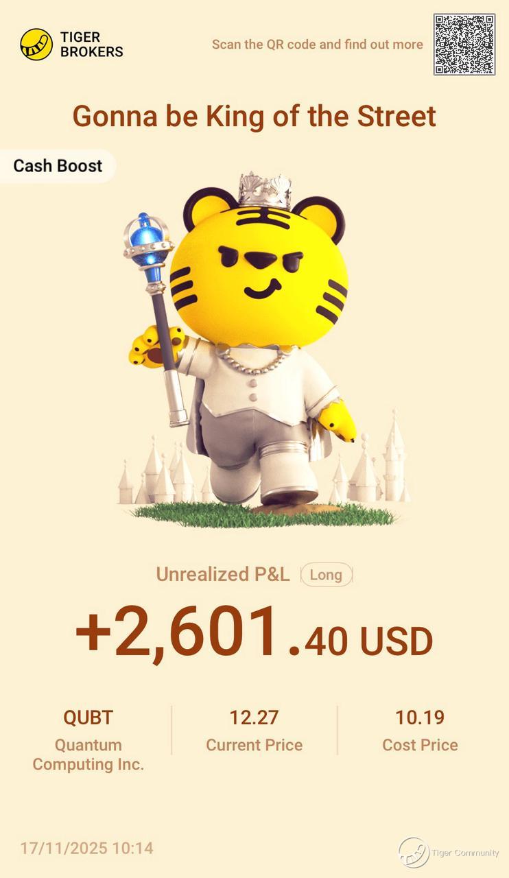 $Quantum Computing Inc.(QUBT)$ No wonder the quantum sector exploded Friday and kept rising after hours! QUBT's strong earnings lit the fuse. With a solid balance sheet, growing team, and clear roadmap, this growth story is just starting. Took some profits and stayed long! P.S. The Contra688 promo is fire – scored SGD 688 in vouchers!